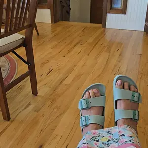 Love these! They're so comfy and really cute, plus you never have to stress about them getting wet. My bad, I ordered them a bit big, so I'm tripping on the toe – totally my fault though, they're great otherwise!