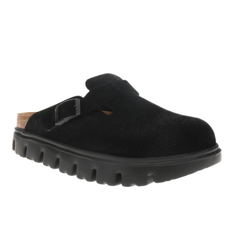 BIRKENSTOCK Womens Boston Chunky Suede Leather Clogs Casual - Black