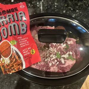 ·Add one BirriaBomb to a pot with 4 lbs of your favorite meat and 6 cups of water.