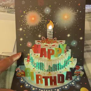 Celebrate with INPHER's delightful birthday cards featuring fireworks and a pop-up cake. This set includes a blowable light and music happy birthday card, perfect for making your special day even more memorable.