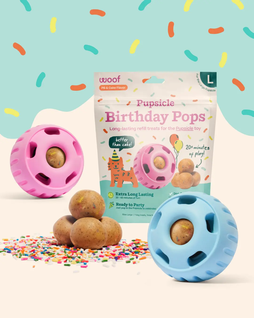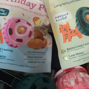 I love these ! They keep my dog entertained for about 30 minutes. The birthday pops smell like peanut butter which is perfect for my dog