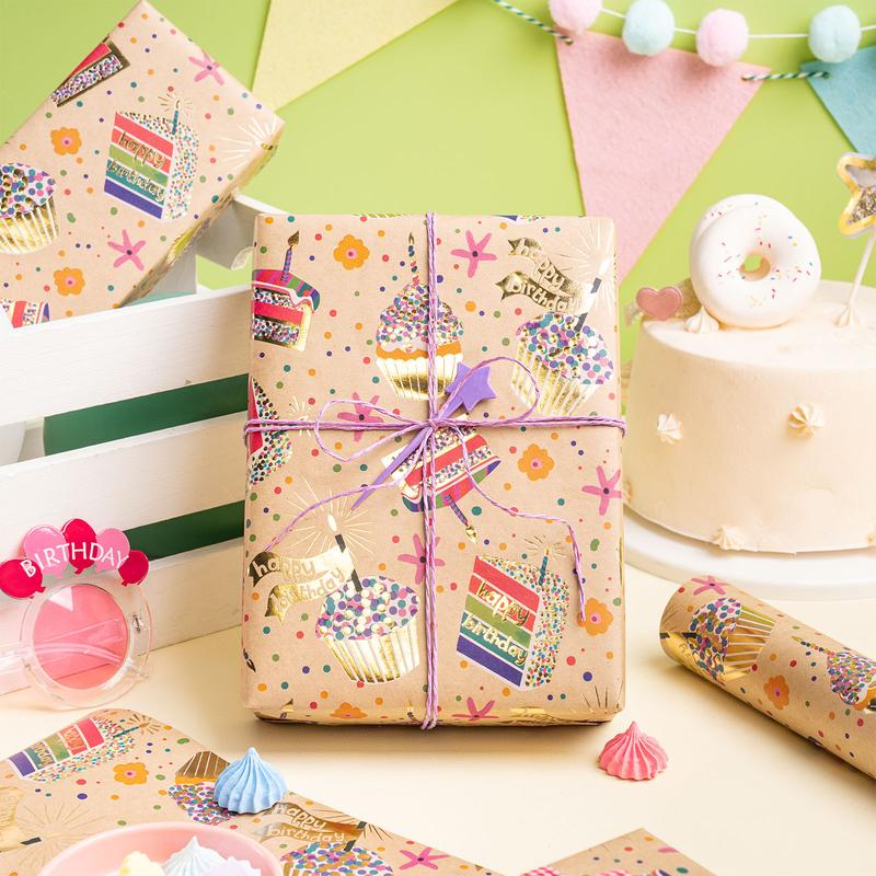 ·Playful Cake and Dot Design Wrapping Paper: The birthday wrapping paper is designed with gold foil colorful cake and dots that provides a shiny effect, the shimmering pattern add a elegant touch to your gift packages