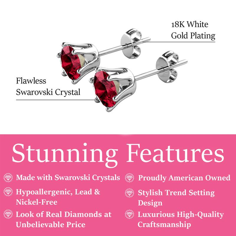 Birthstone Earrings 18k White Gold Plated Stud Earrings with 1CT Simulated Diamond Crystals