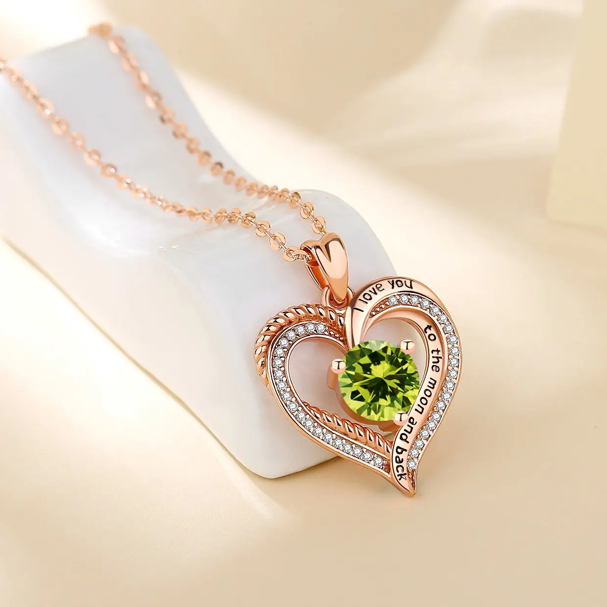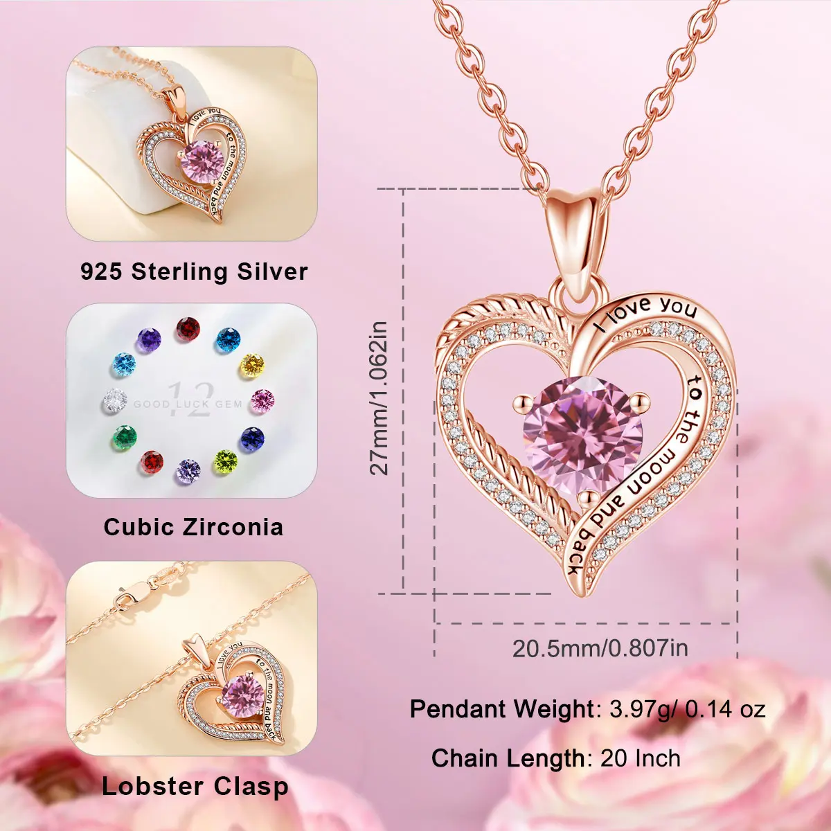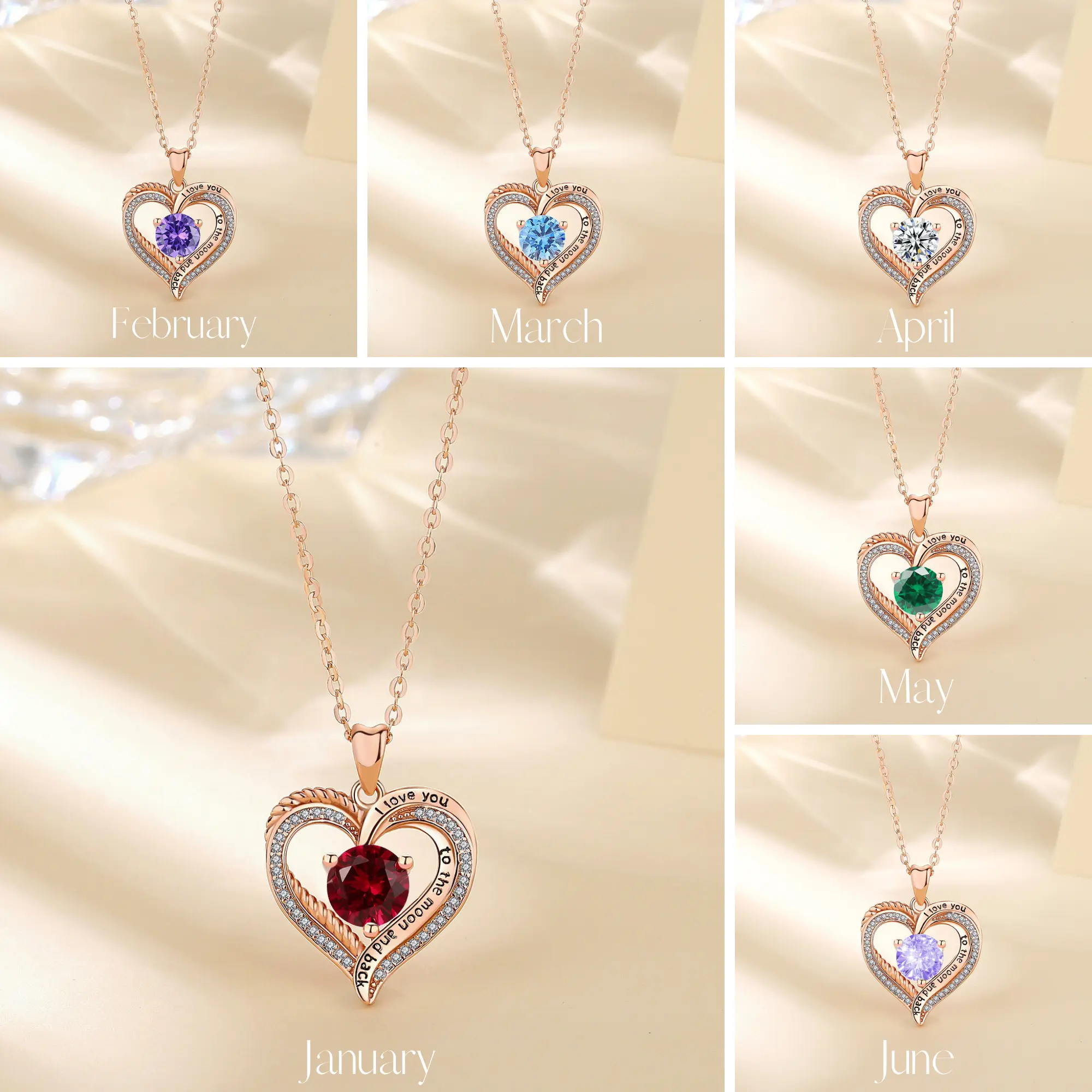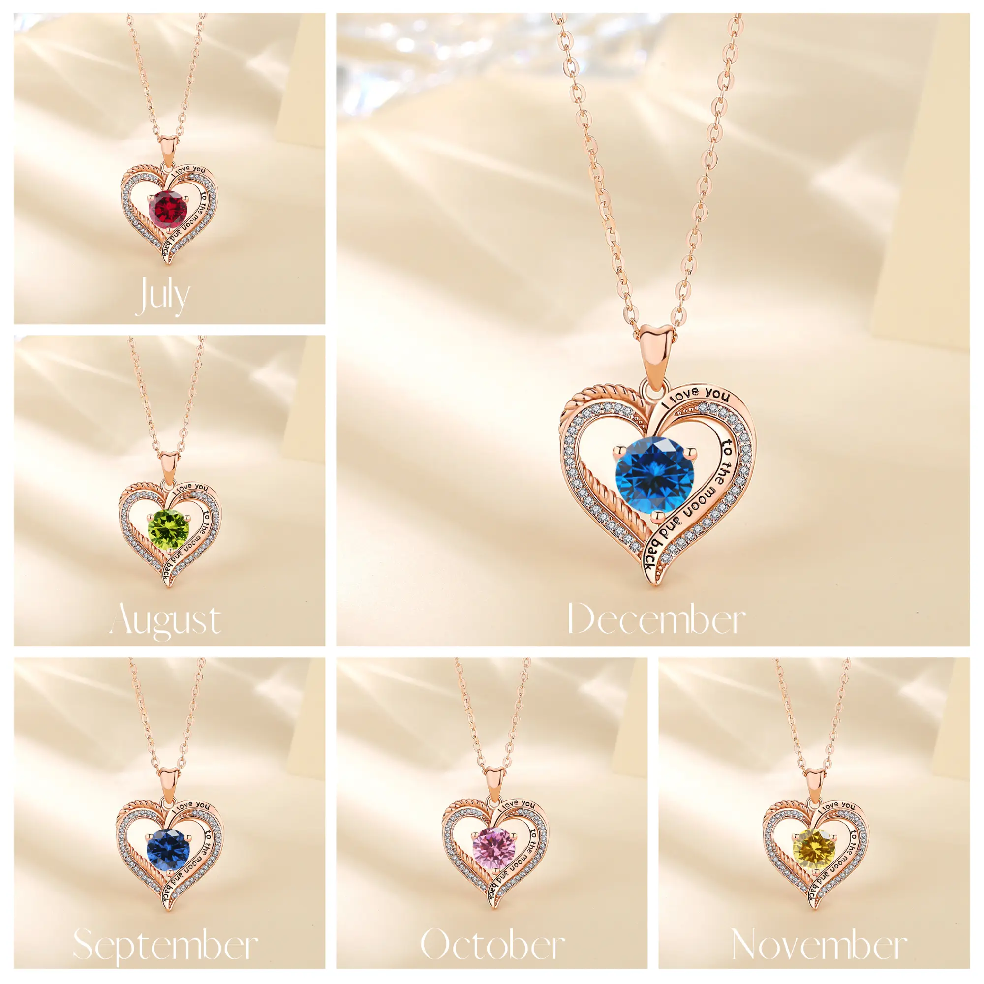 Set within the heart-shaped pendant, delicate gemstones gracefully represent the beauty of each month, celebrating the uniqueness of every individual.
