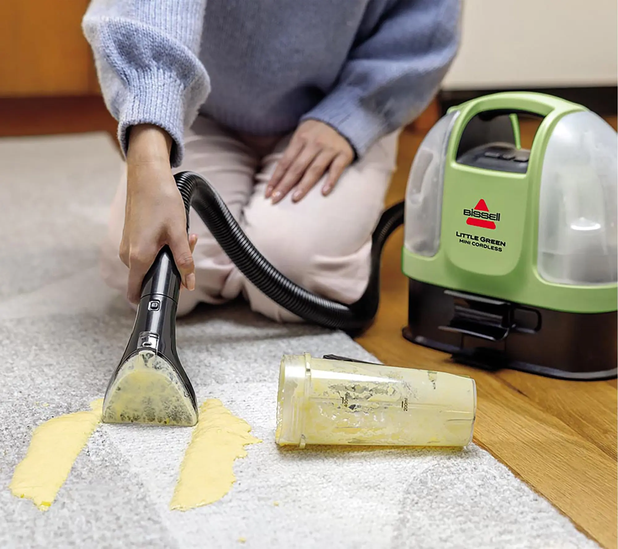package: the Bissell Little Green Mini Cordless portable upholstery and carpet cleaner -- your essential grab-and-go mess-buster!