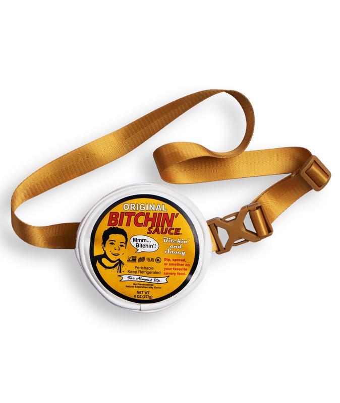 Dip into style with the Bitchin' Tub Fanny Pack, shaped like our iconic Original sauce tub! This snack-sized slinger features an insulated pouch to keep your sauce cold, a saucy gold adjustable waistband for a comfy, super Bitchin' fit, and an exterior pocket for ez access to your favorite dipping vessel.
