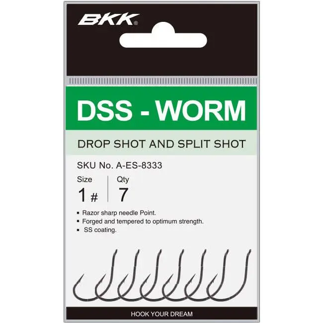 ·The BKK DSS - Worm is a thin hook designed for drop shot and split shot applications.