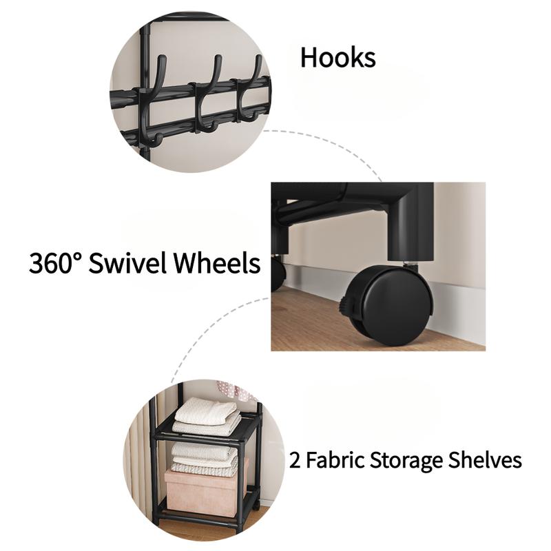 Black 2-Tier Freestanding Metal Coat Rack with 360 °   Swivel Wheels, Space-Saving Organizer with 4 Hooks & Storage Shelves for Bedroom/EntrywayBlack 2-Tier Freestanding Metal Coat Rack with 360 °   Swivel Wheels, Space-Saving Organizer with 4 Hooks & Storage Shelves for Bedroom/EntrywayBlack 2-Tier Freestanding Metal Coat Rack with 360 °   Swivel Wheels, Space-Saving Organizer with 4 Hooks & Storage Shelves for Bedroom/EntrywayBlack 2-Tier Freestanding Metal Coat Rack with 360 °   Swivel Wheels, Space-Saving Organizer with 4 Hooks & Storage Shelves for Bedroom/EntrywayBlack 2-Tier Freestanding Metal Coat Rack with 360 °   Swivel Wheels, Space-Saving Organizer with 4 Hooks & Storage Shelves for Bedroom/EntrywayBlack 2-Tier Freestanding Metal Coat Rack with 360 °   Swivel Wheels, Space-Saving Organizer with 4 Hooks & Storage Shelves for Bedroom/EntrywayBlack 2-Tier Freestanding Metal Coat Rack with 360 °   Swivel Wheels, Space-Saving Organizer with 4 Hooks & Storage Shelves for Bedroom/EntrywayBlack 2-Tier Freestanding Metal Coat Rack with 360 °   Swivel Wheels, Space-Saving Organizer with 4 Hooks & Storage Shelves for Bedroom/Entryway