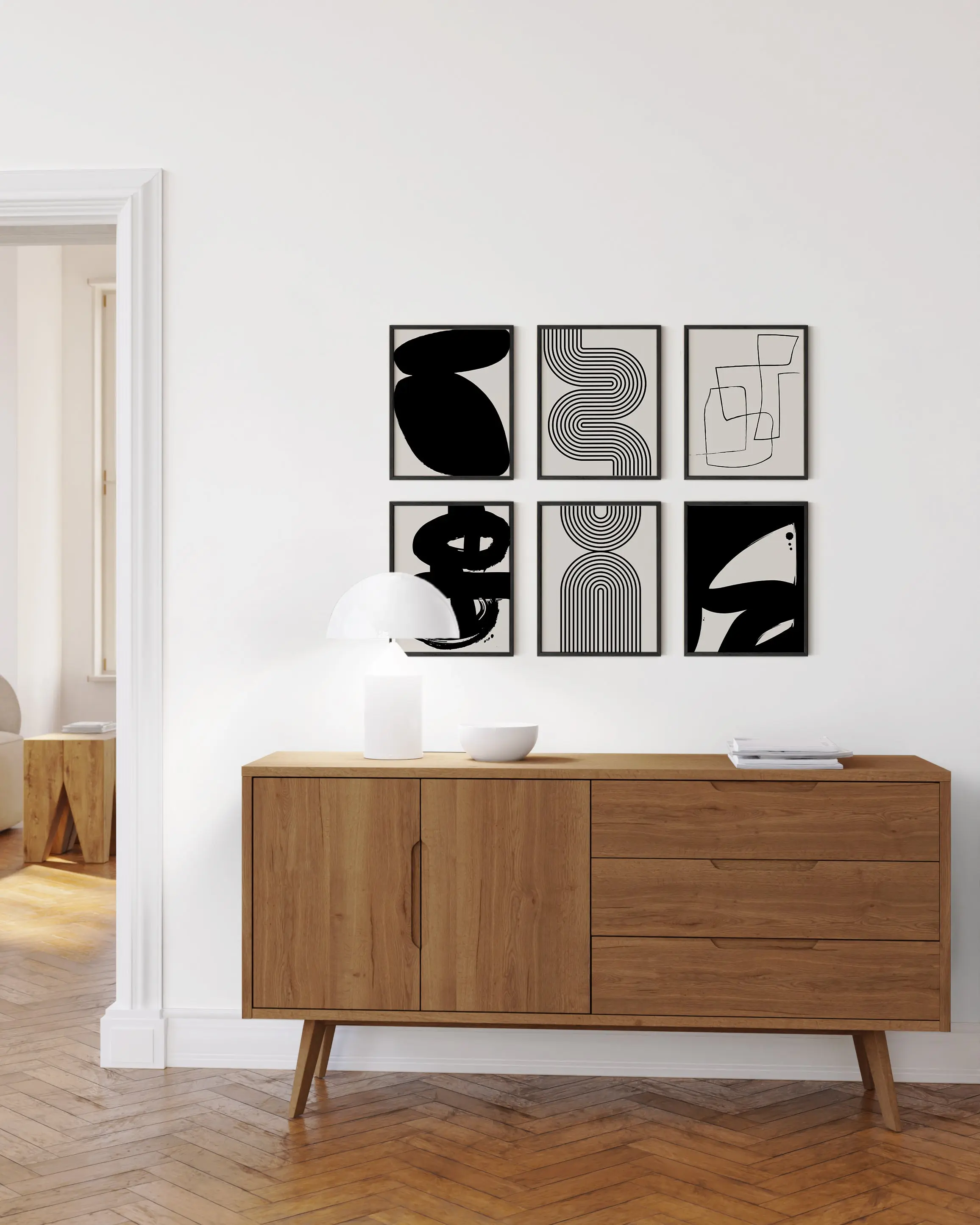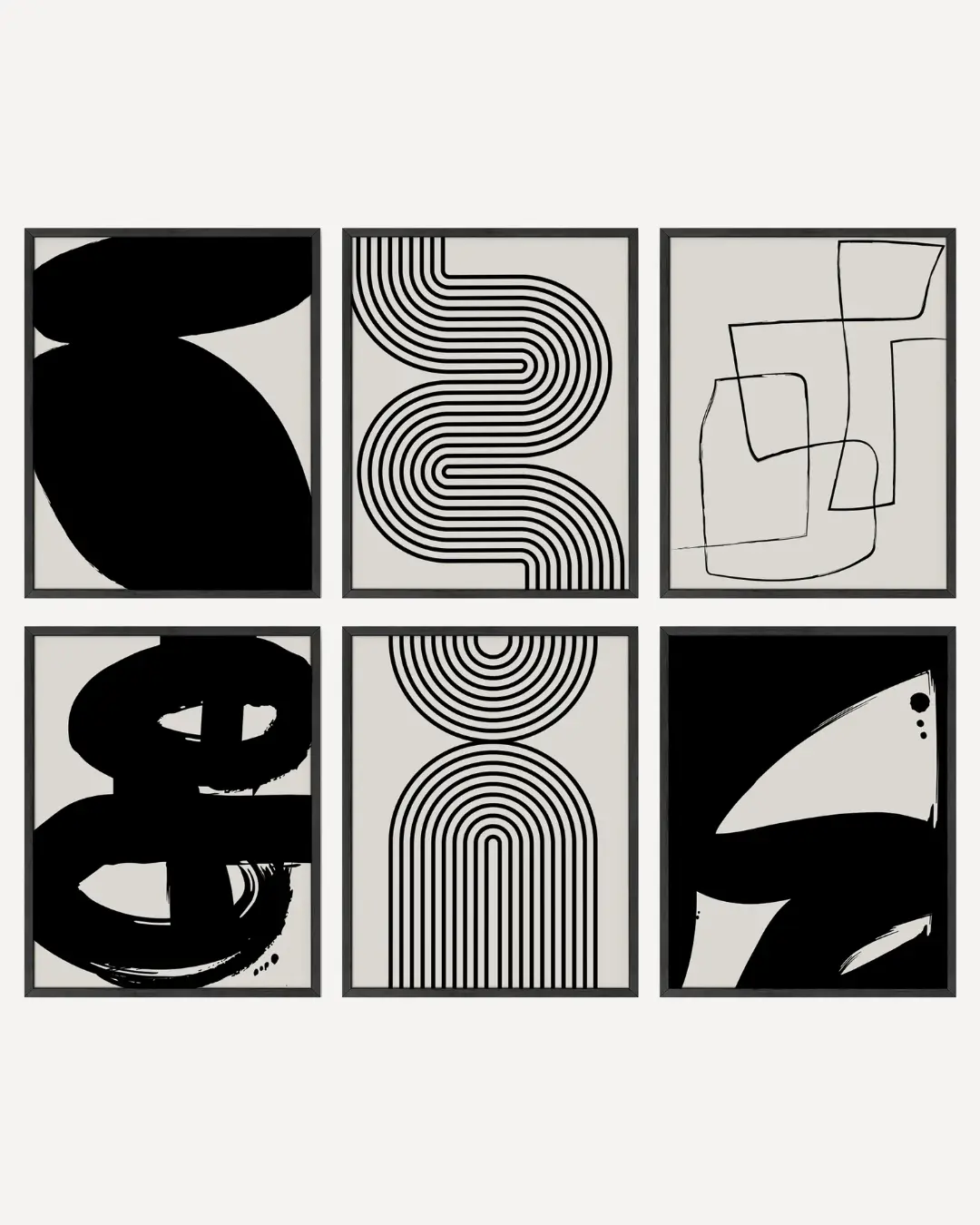 Black Abstract Set of 6 - Artistic Wall Decor Print for Room Aesthetic and Vibe