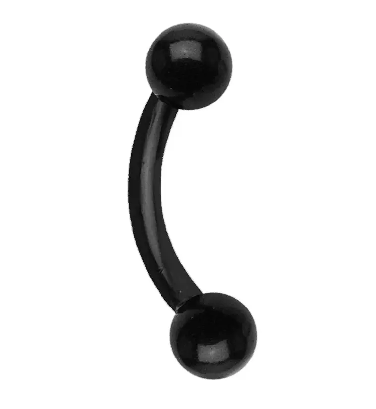 Black acrylic curved barbells with balls on the end. Externally threaded. Curved barbell. Size is 16G. Choose your length between 5/16" (8mm). 8mm length will have 3mm balls. Sold individually (1pc). For healed piercings.