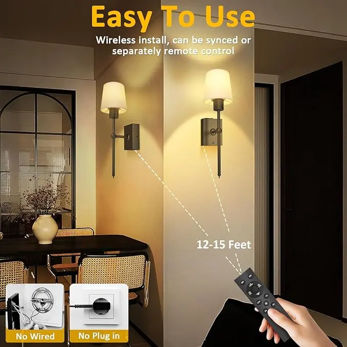【Remote Control & Easy Installation】This battery wall sconces with remote control allows you to easily adjust the brightness and color temperature of the battery sconces from a distance of 12-15 feet, and each wall sconce can be controlled independently. Meanwhile, the sconce light can be installed in minutes, mounting to the wall with screws. No wiring required for a hassle-free installation and illumination.