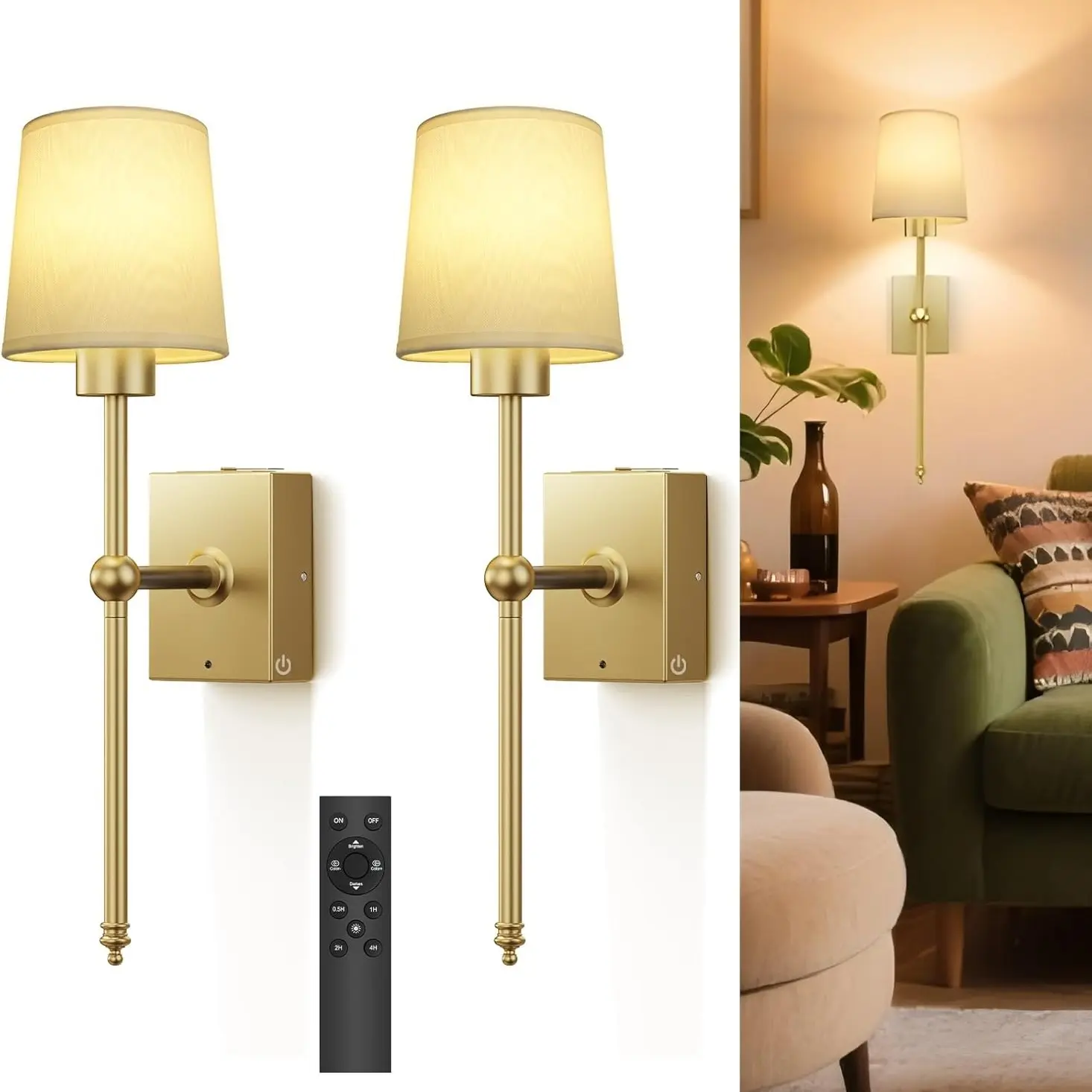 【Exquisite Indoor Wall Lights】Bright soft light, durable fabric cover, frosted body, at the beginning of the design, this rechargeable wall sconces set of two combines practicality and aesthetics to better give a sense of atmosphere to the space, ideal sconces wall decor set of 2, battery operated wall sconce for bedroom, living room, hallway, kitchen, bathroom, staircase, fireplace, TV wall, pictures.