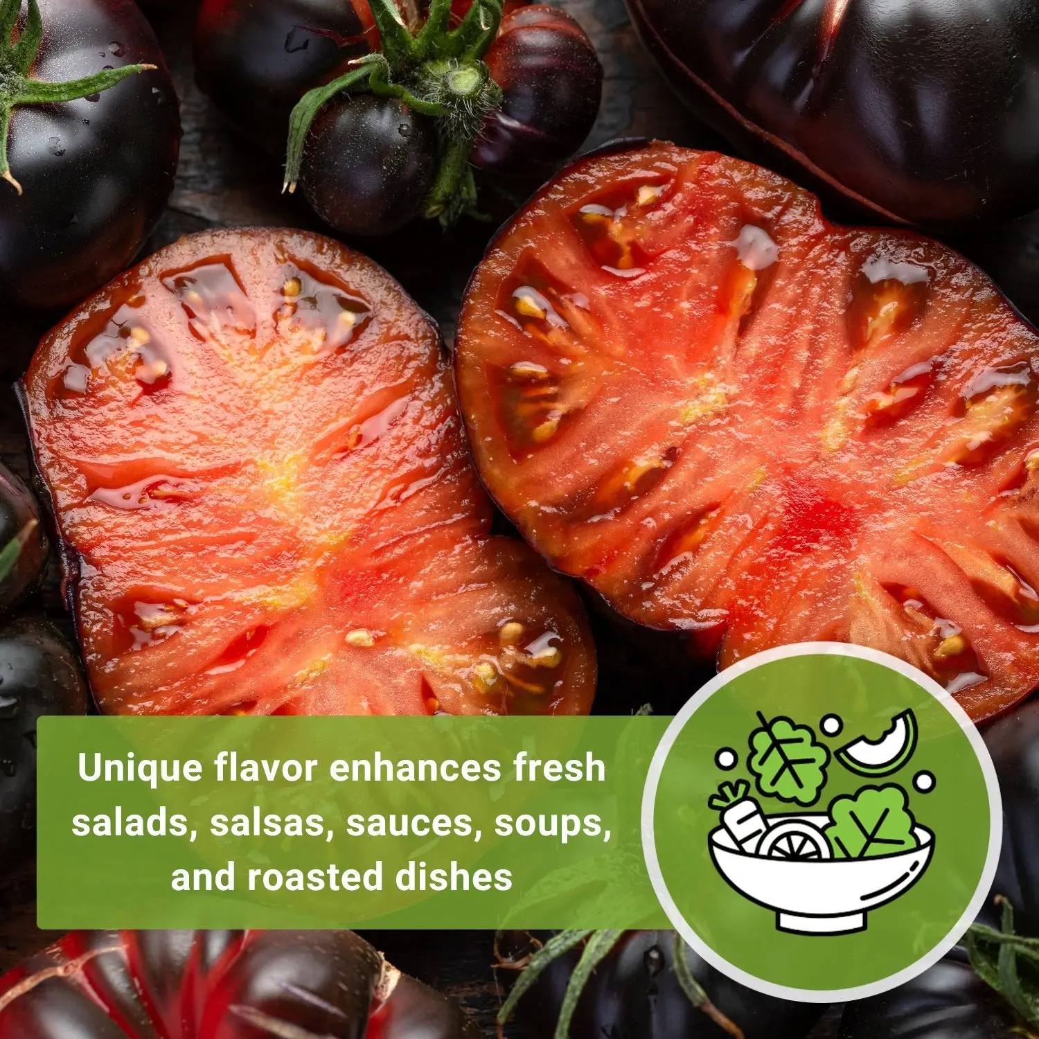 ·Produces large, juicy, dark purple slicing tomatoes with a smoky, sweet flavor.