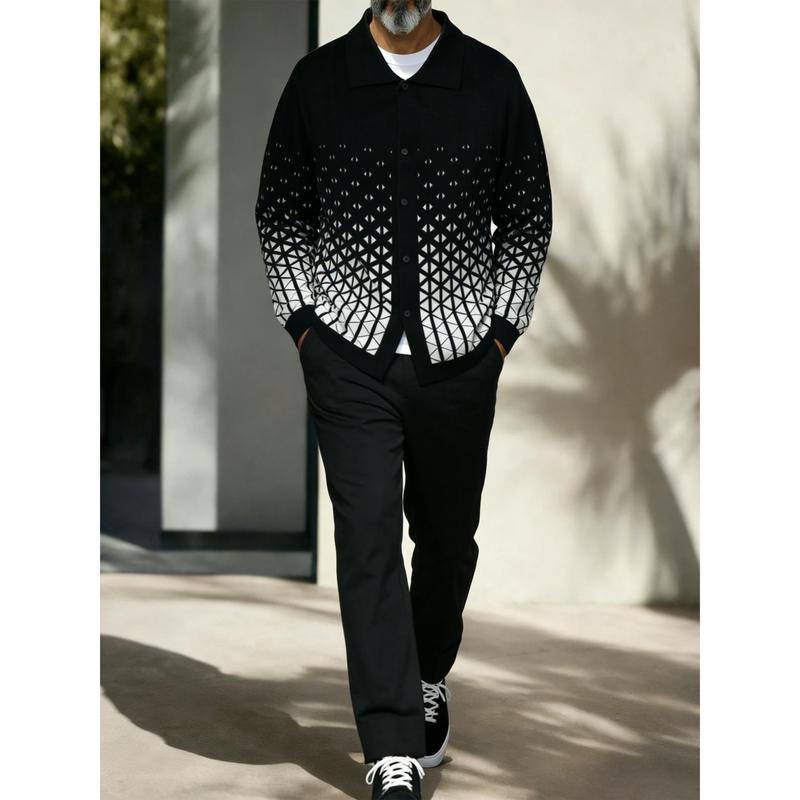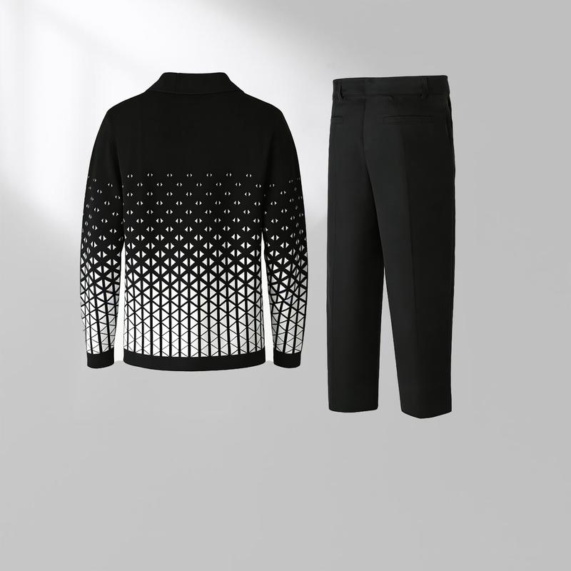 5. Black Criss Cross Pattern Walking Suit Long Sleeve Set