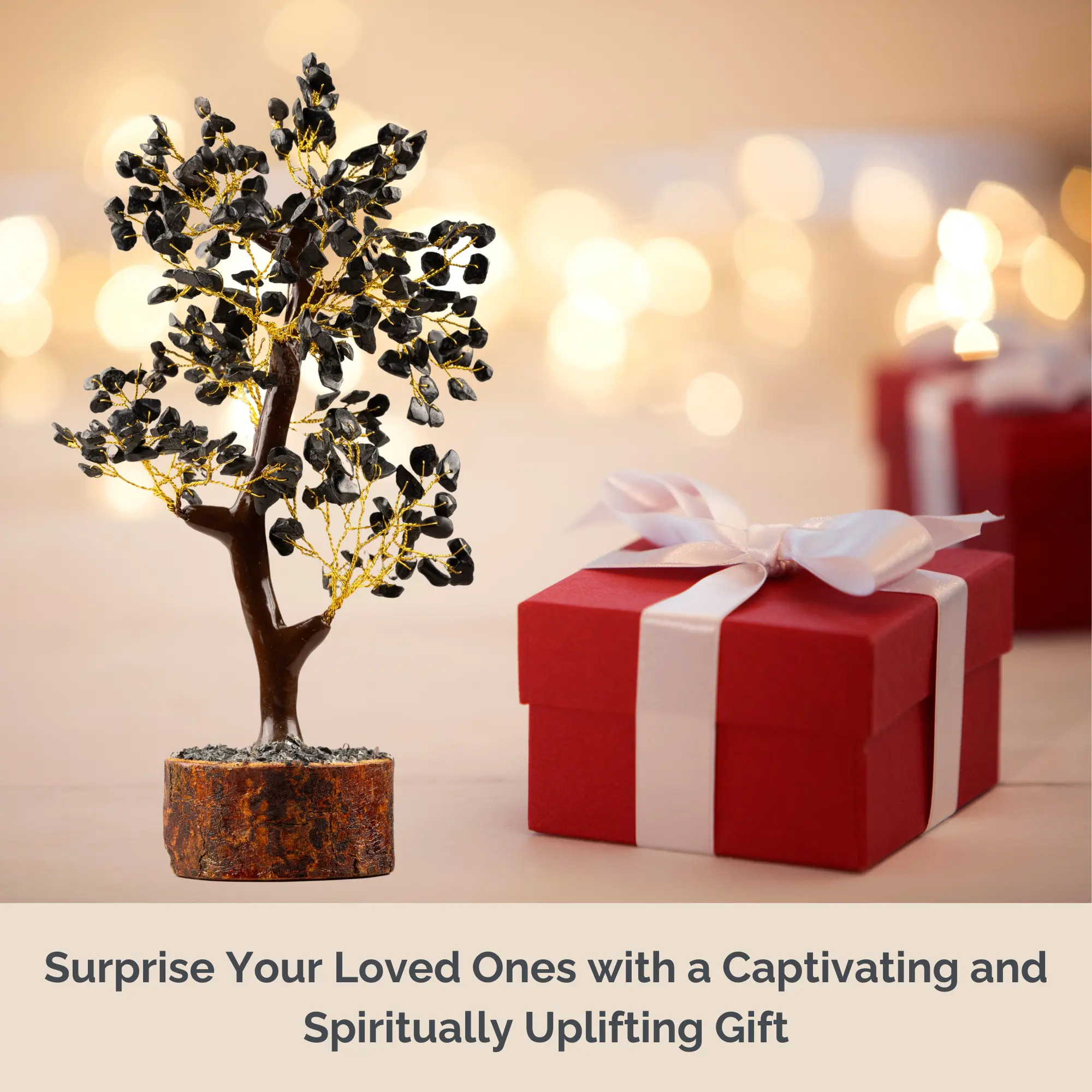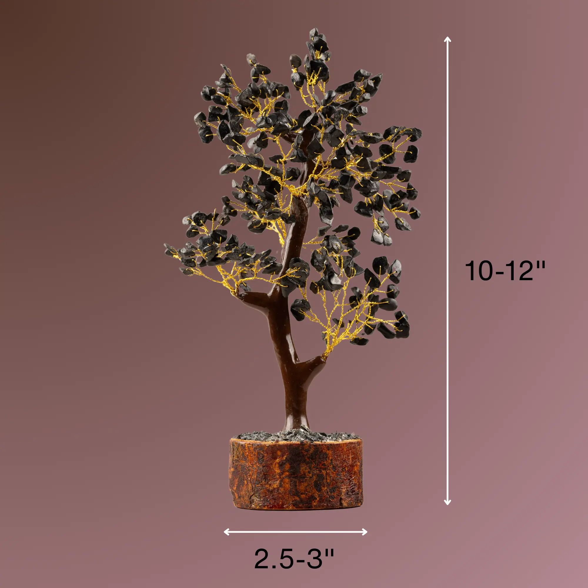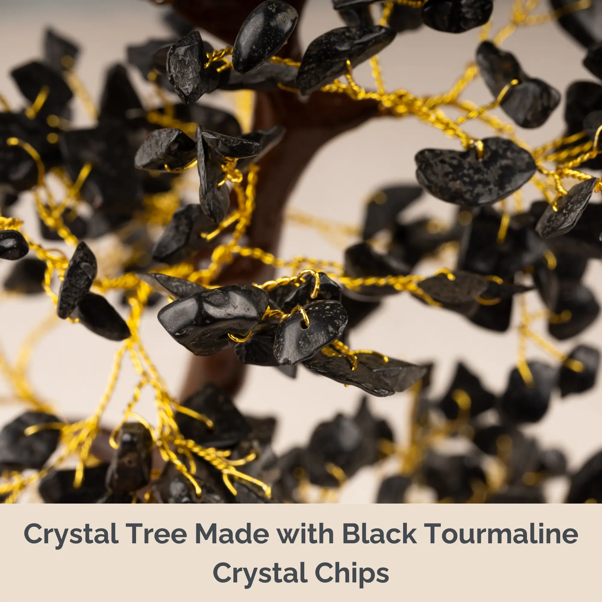 Handcrafted Beauty: The golden wire branches intricately display the black tourmaline chips, creating a unique and visually striking decorative tree.
