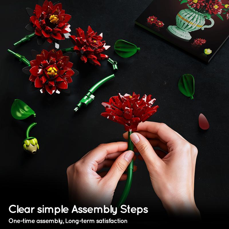 Embrace a captivating blend of dark beauty and floral artistry with the black dahlia flowers building set. Inspired by Gothic aesthetics, this set displays rich crimson petals edged in deep black layers, creating an aura of mysterious elegance