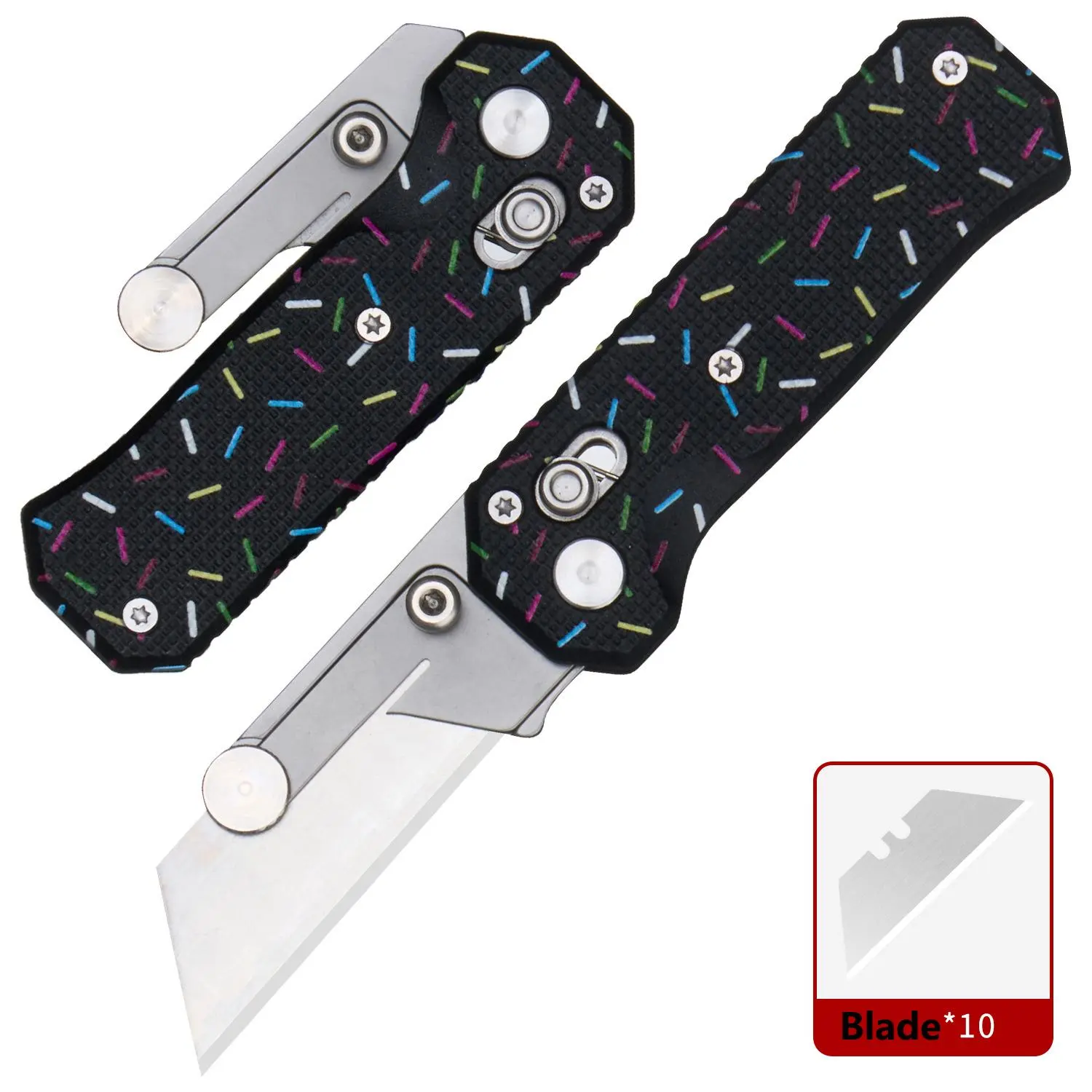 Black Dessert Utility Knife+10pc Replaceable Blades,Portable Folding Knife,Defense Kits,Retractable Blades,FallFreshness