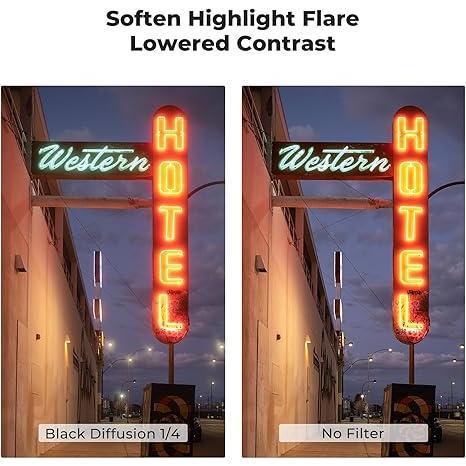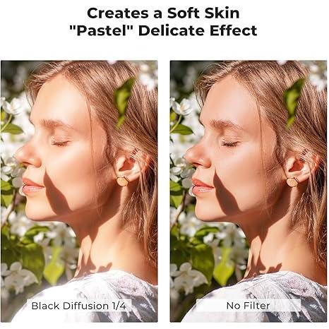 [Soft Highlight Flares, Lowered Contrast]This black diffusion 1/4 filter can soften facial skin's wrinkles, freckles, and pores, making it more delicate, plump, and gorgeous.The mist dream effect can be better realized, by showing the film effects dreamily.