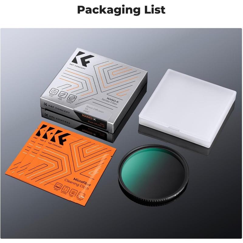 [Import Optical AGC Glass]K&F Concept black diffusion filter made by imported Japanese AGC optical glass, double side multi coats to 84% transmittance, ensuring the image quality and no color cast.
