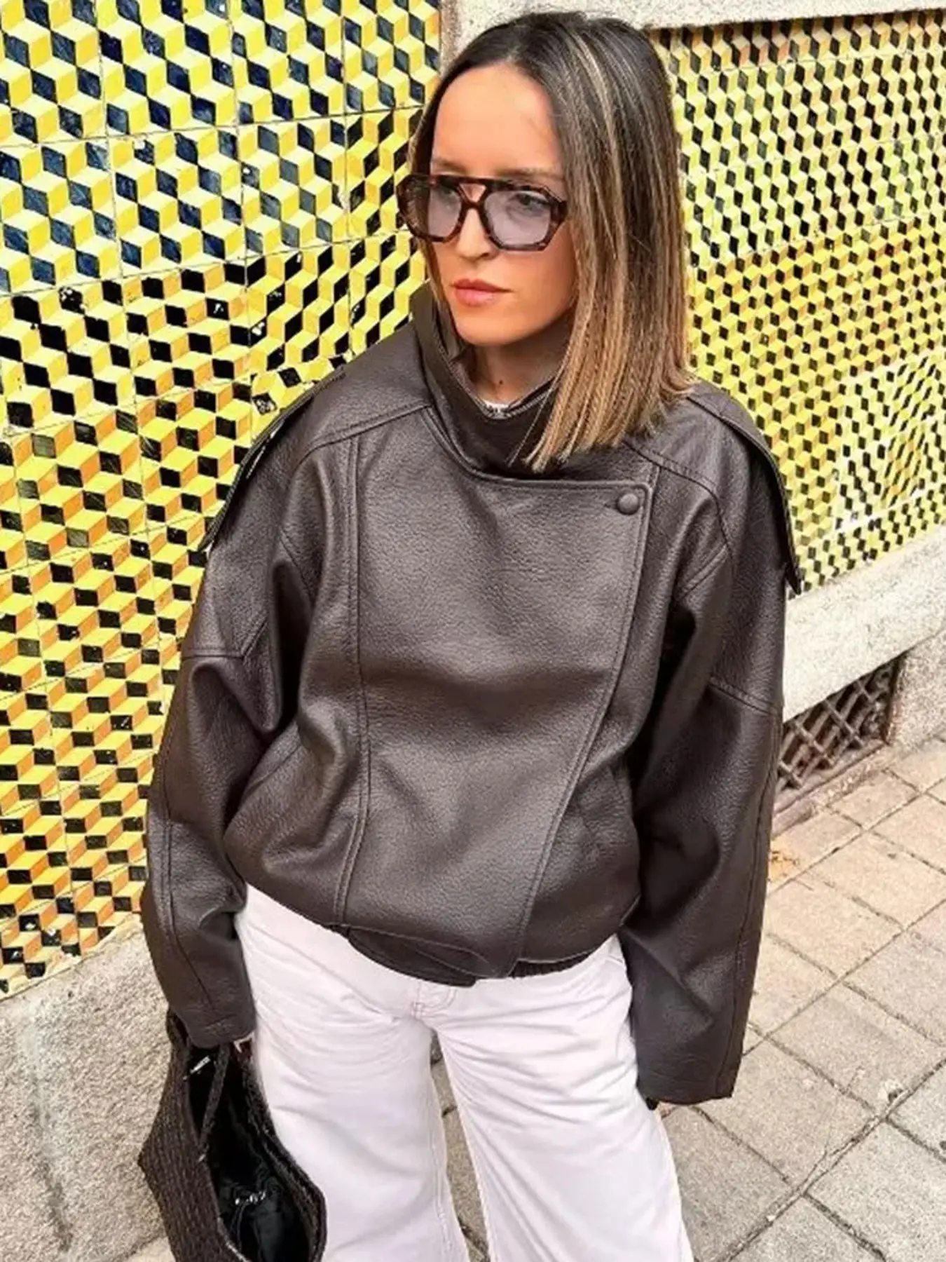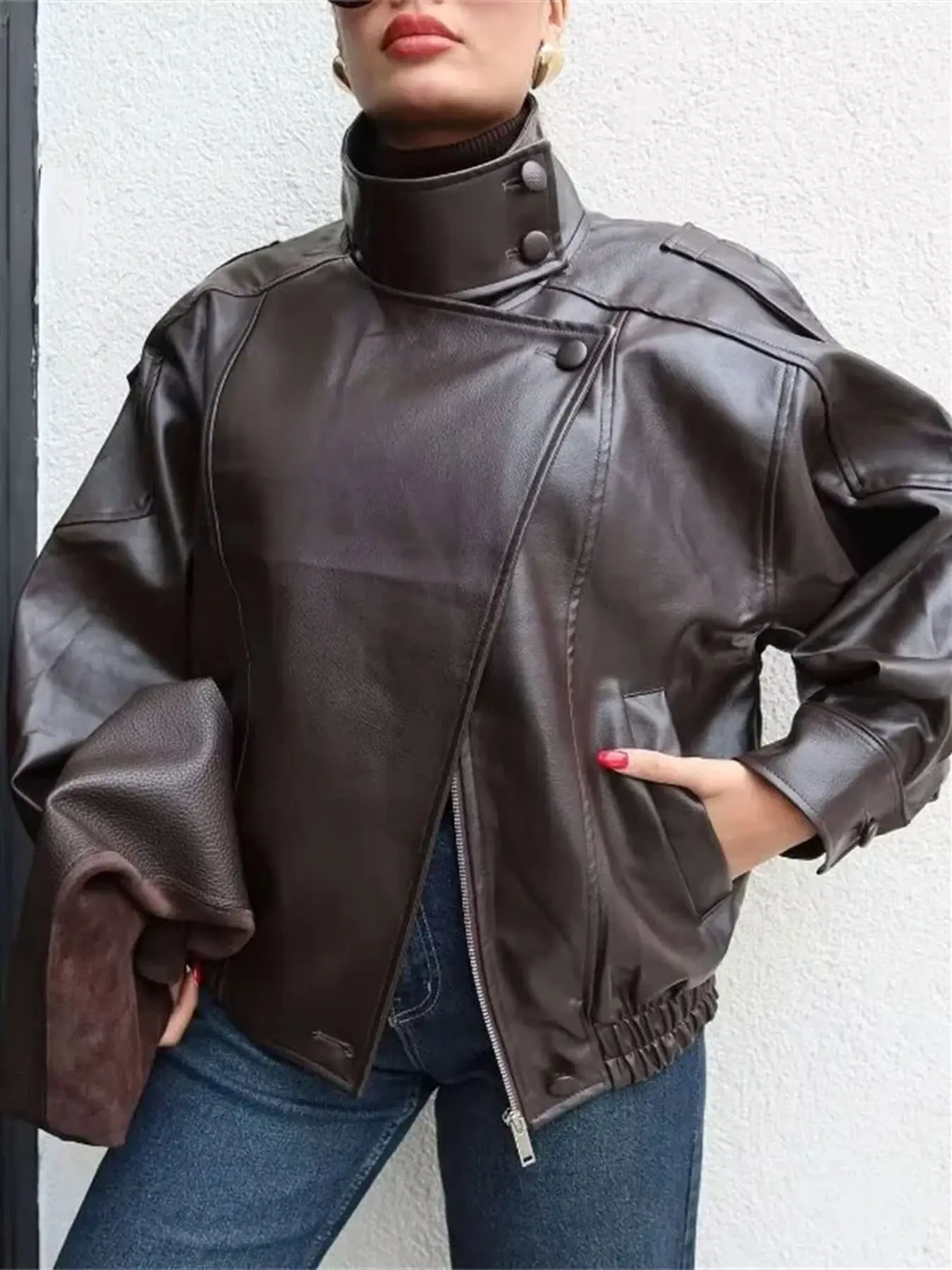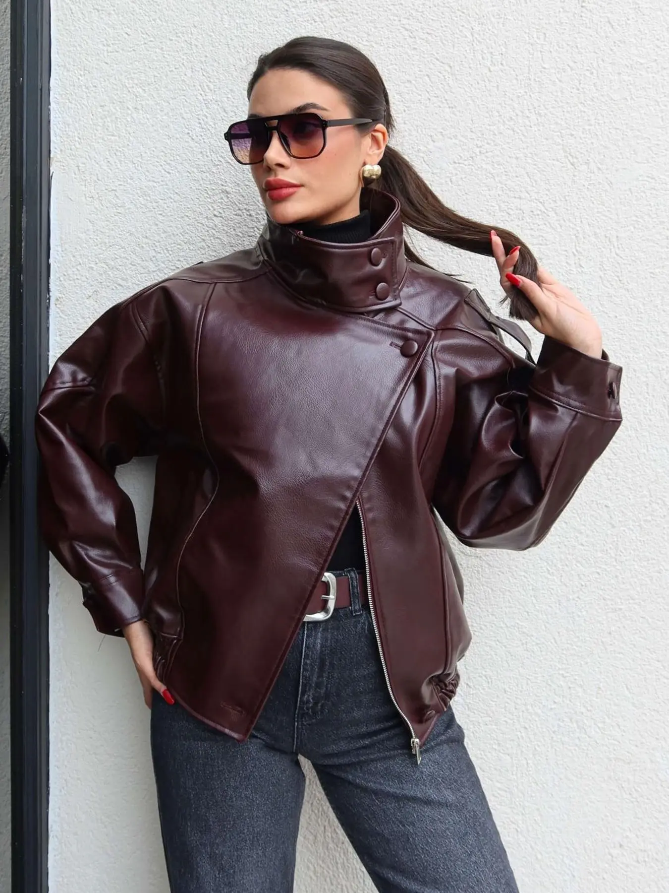 Chic and modern leather jacket with an oversized fit and structured collar. Sleek, bold, and perfect for an elevated everyday look.🥰🥰
