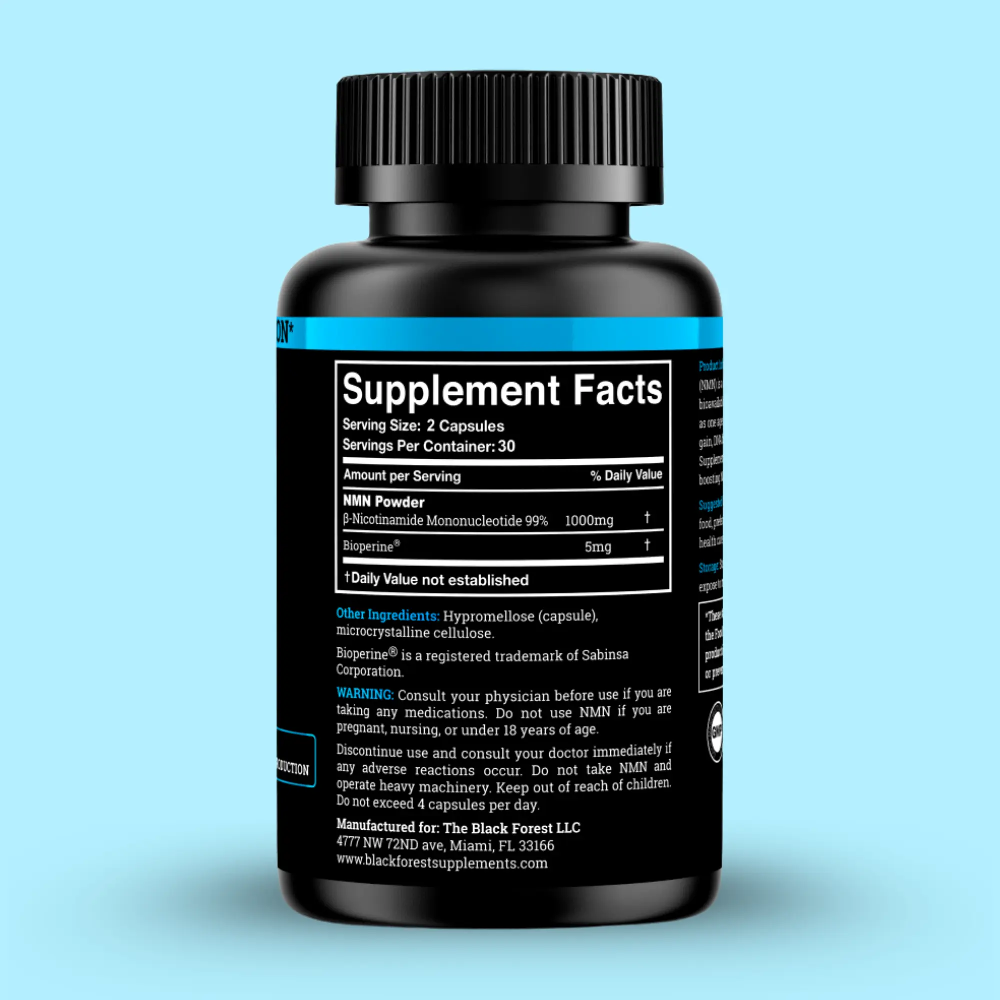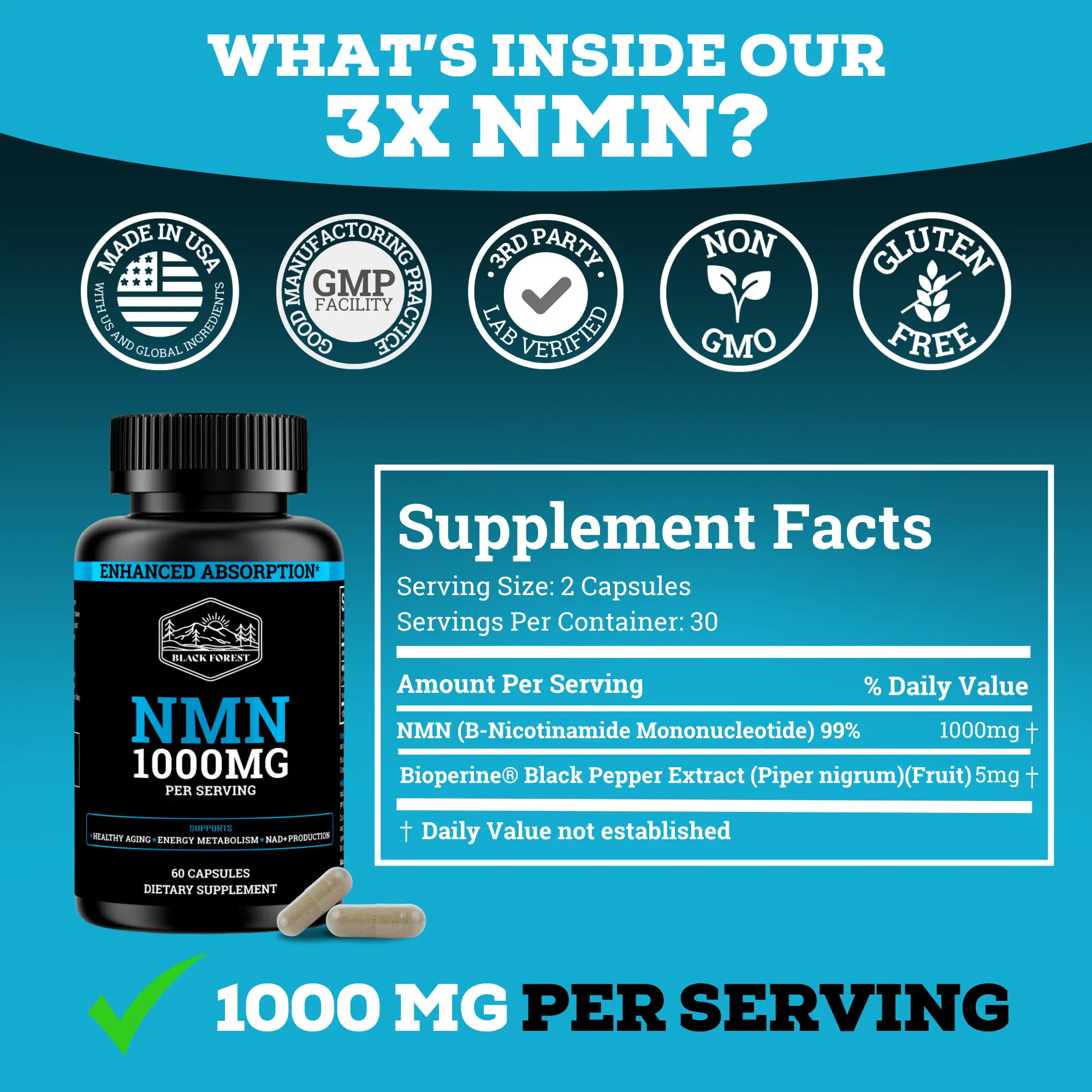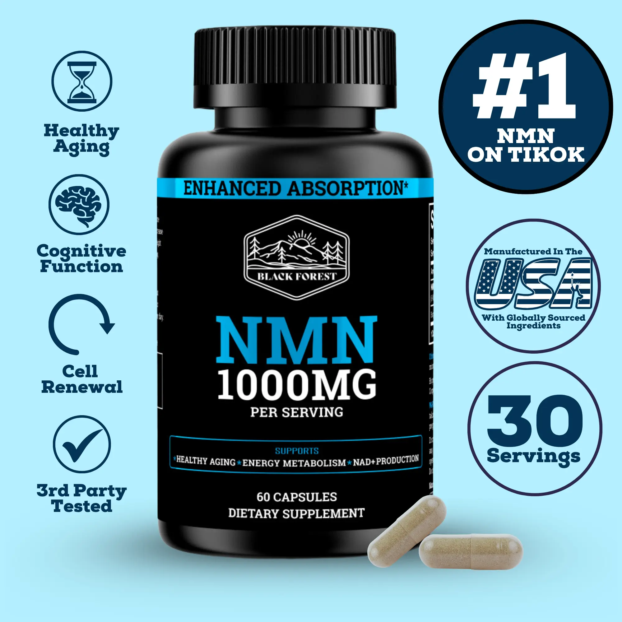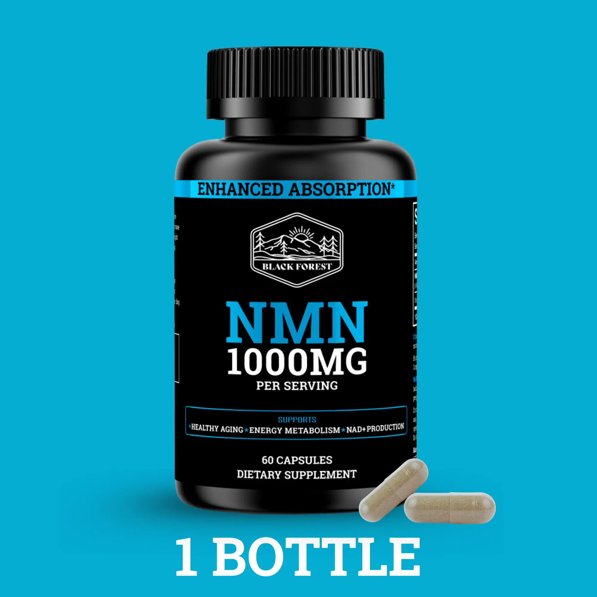 Black Forest Supplements NMN 1000mg – High-Potency NAD⁺ Support (60 Capsules)