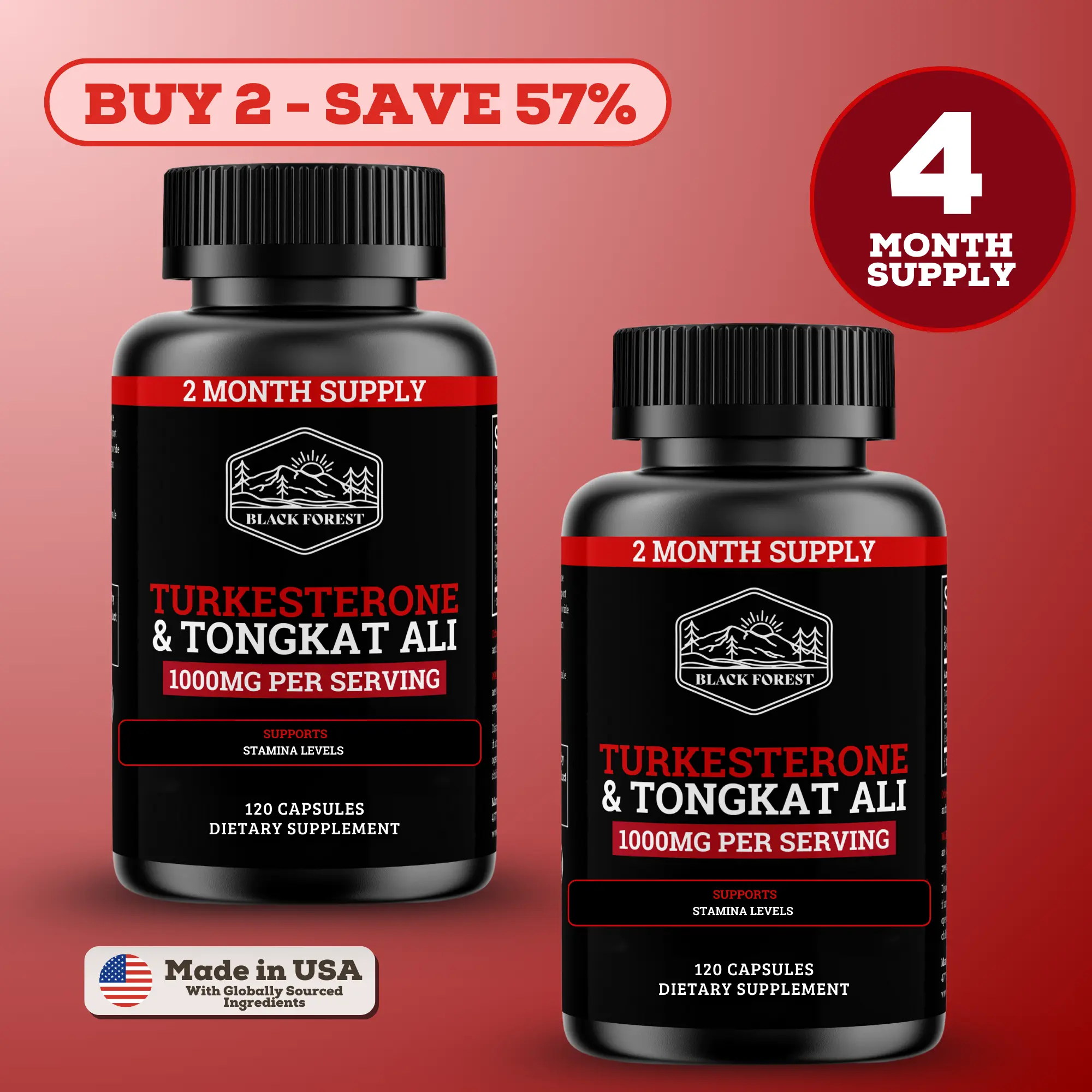 Turkesterone & Tongkat Ali 4 Month Supply (240 Capsules) 1000mg per serving - Experience the Black Forest Difference.