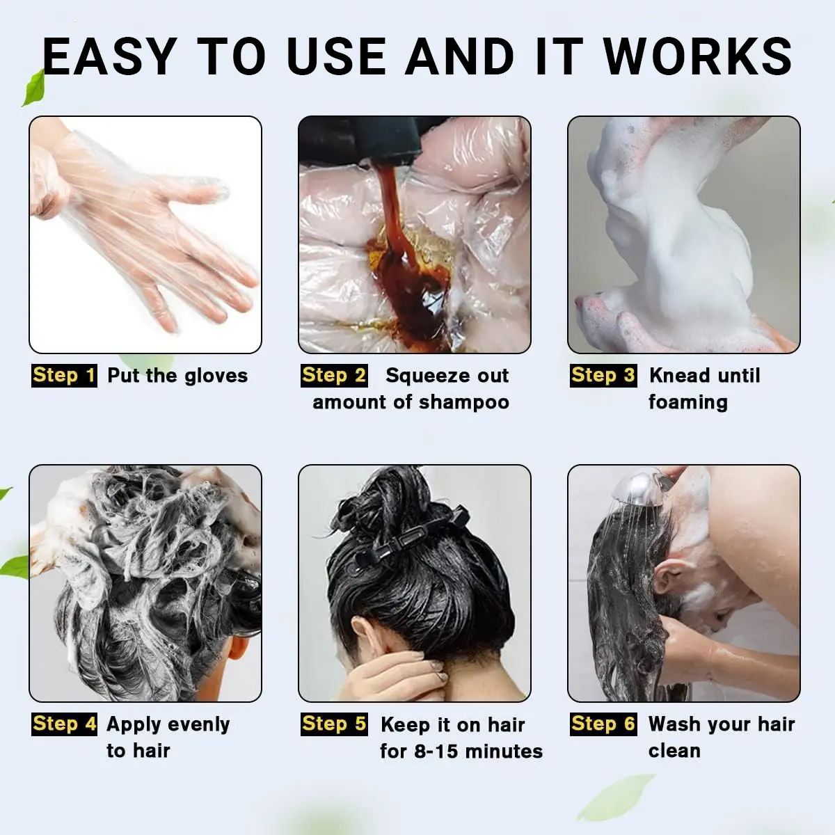 【Easy to use】 All you need to do is apply the color shampoo while your hair is dry like a normal shampoo, leave it on for 15-20 minutes and rinse it out completely. Effortless.