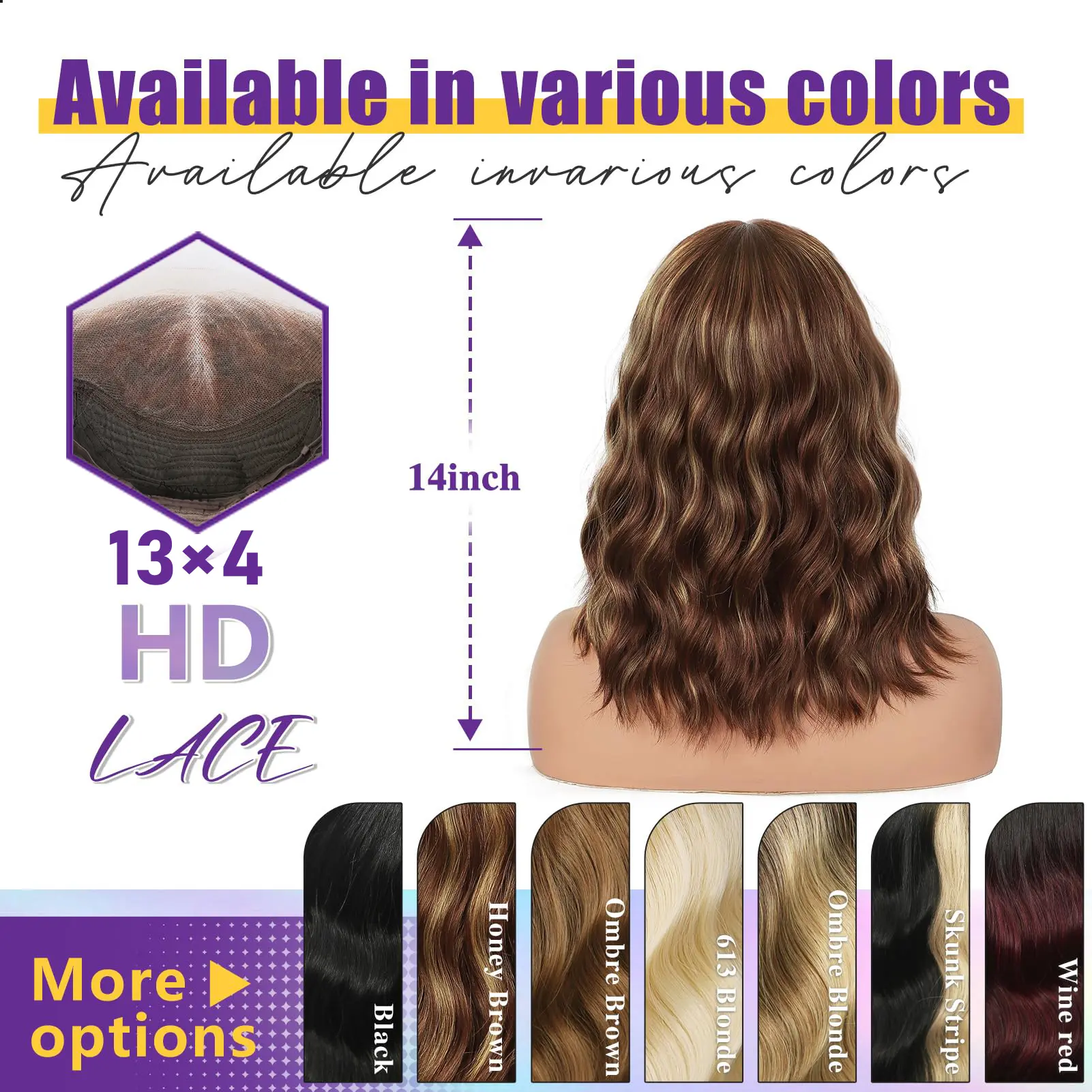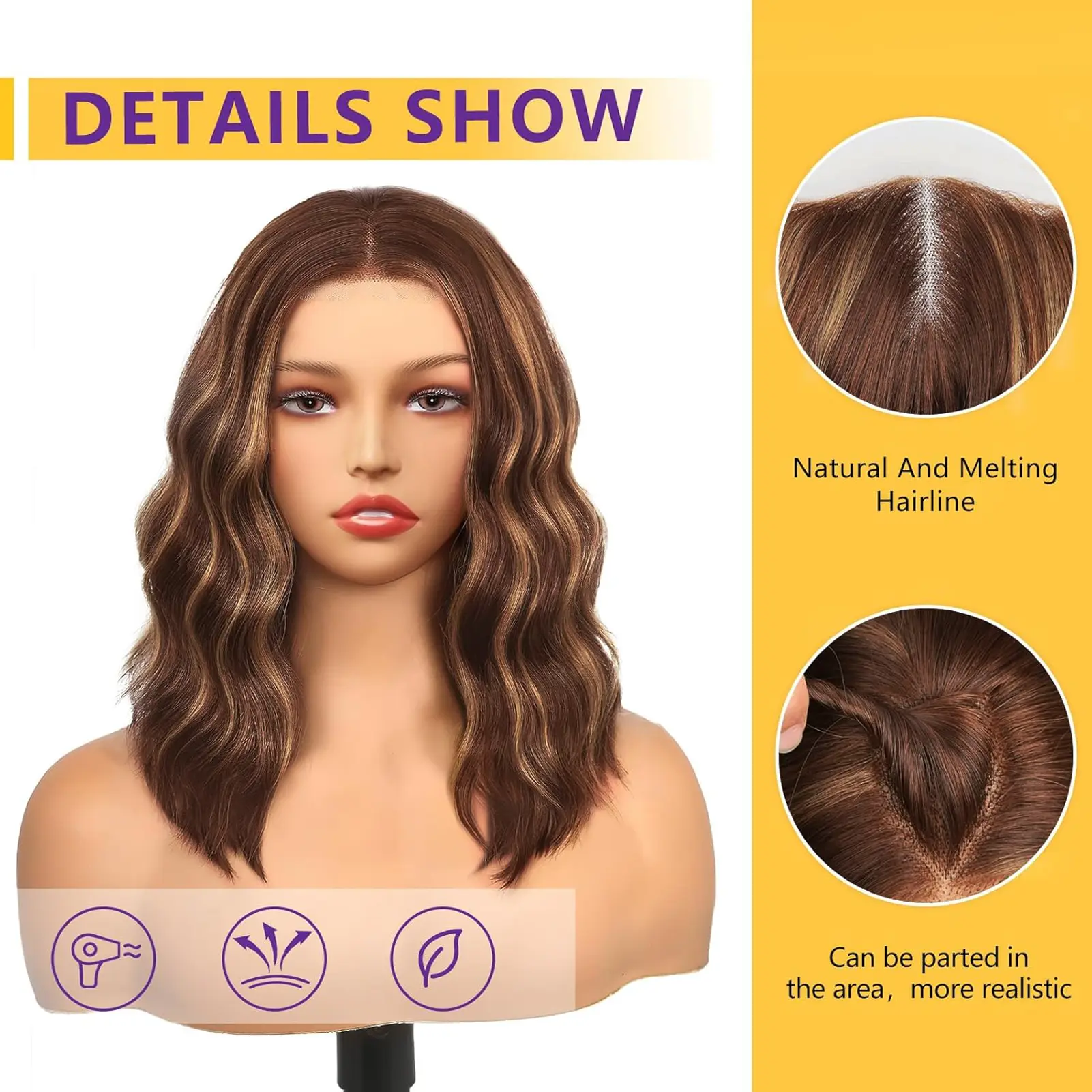 · 【Melts and Match Your Hairline】: This Honey blonde short wavy wig is 14 inches long, soft, full and thick. The ombre blonde wig has enough area for hand-tied lace; there is also a lace area and hand-tied hair on both sides of the forehead, with quirky edges that match the hair, allowing your natural Hairline The lines are More Realistic and match your forehead hair better.
