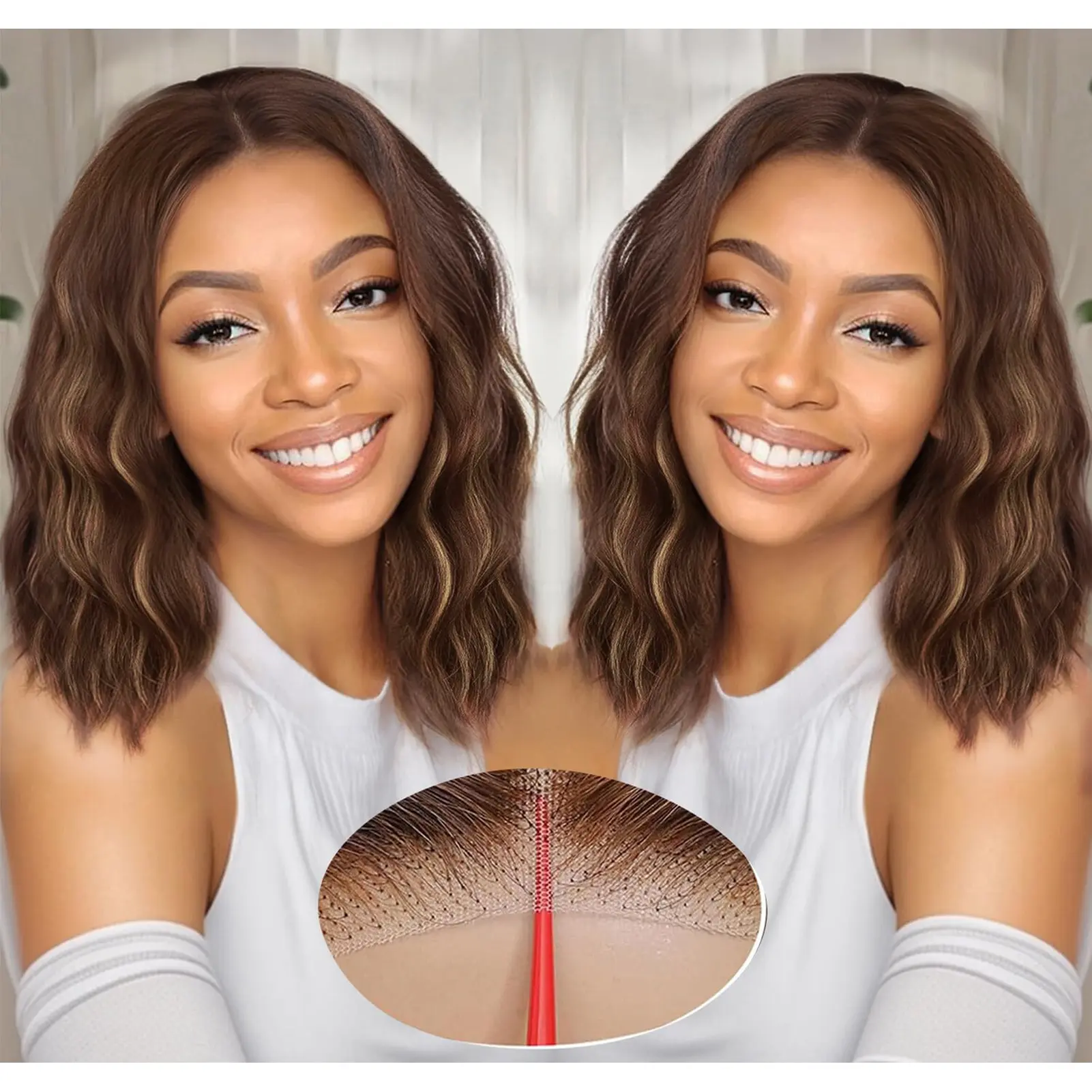 · 【Comfortable and Adjustable Cap】: This Bob Wavy Wig has an average head size of 21 inches - 22.5 inches. It has 2 elastic bands with 2 combs. The breathable mesh cap provides you with a comfortable fit. The charming curly wig lace is PRE-CUT and easy to install and remove, saving you more time.