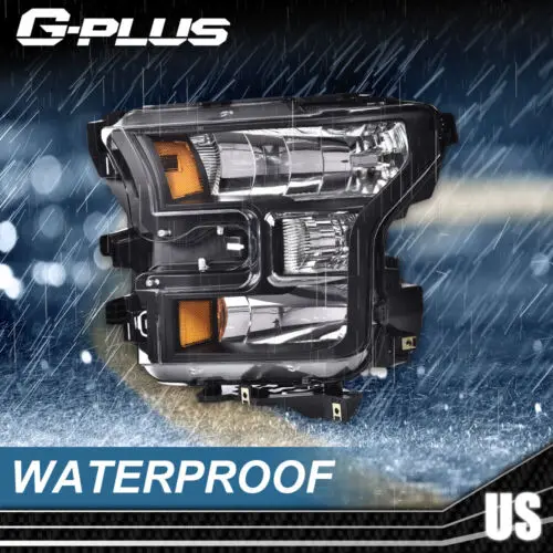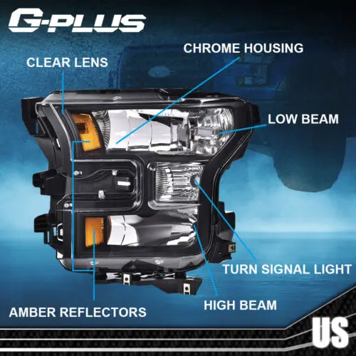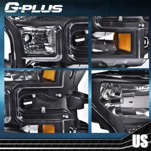 5. Black Housing Corner Headlights Clear HeadLamps Pair Fit For 2015-2017 Ford F150