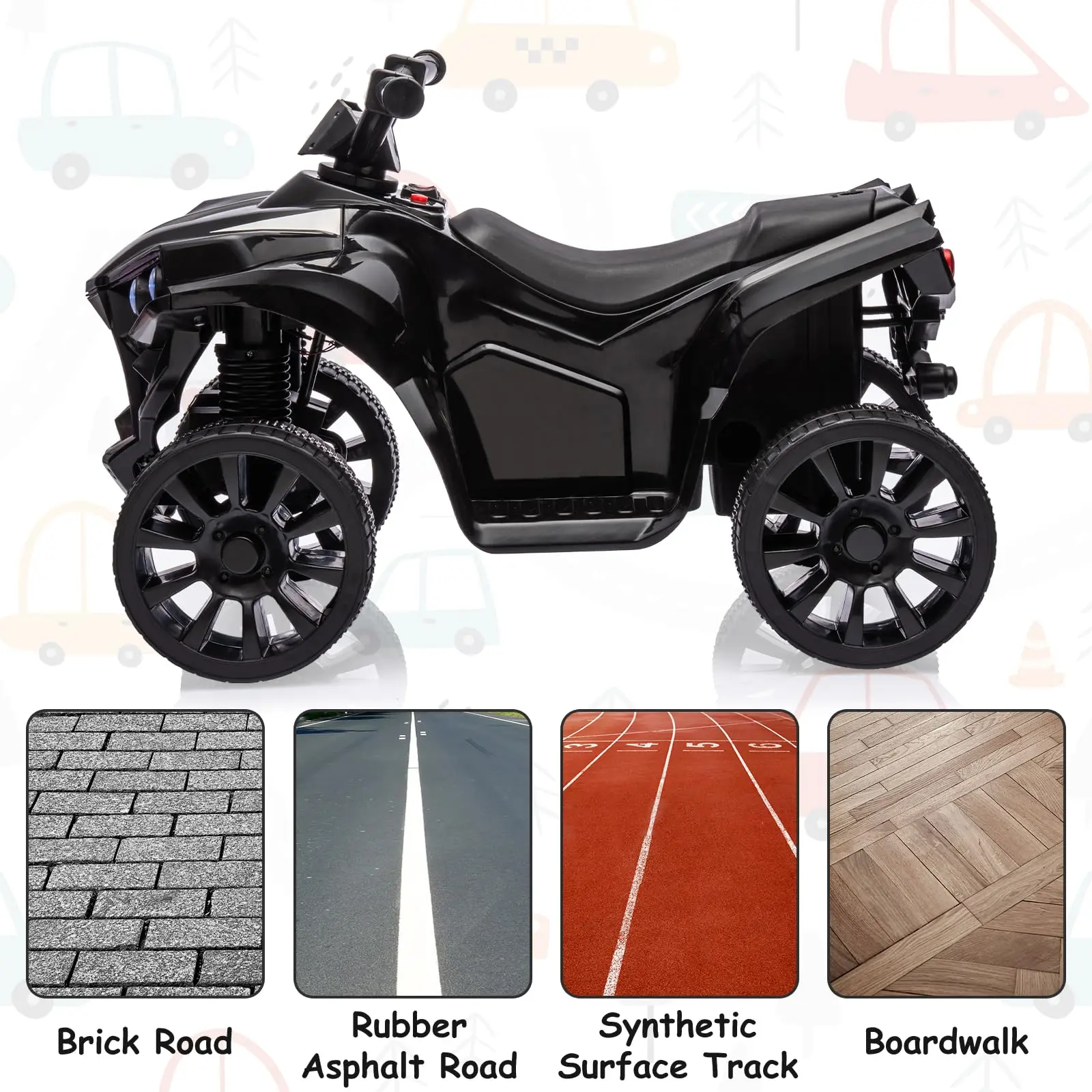 COOL APPEARANCE: This kids ATV has a cool ATV look and wear-resistant wheels, which allows child to transform into a cool little racer, experience superhero riding fun.