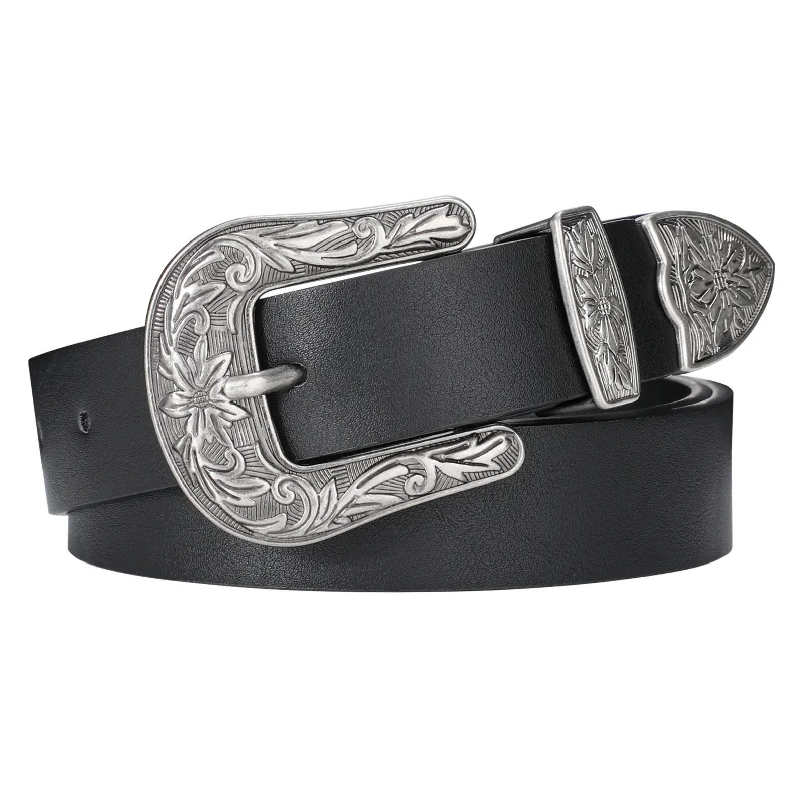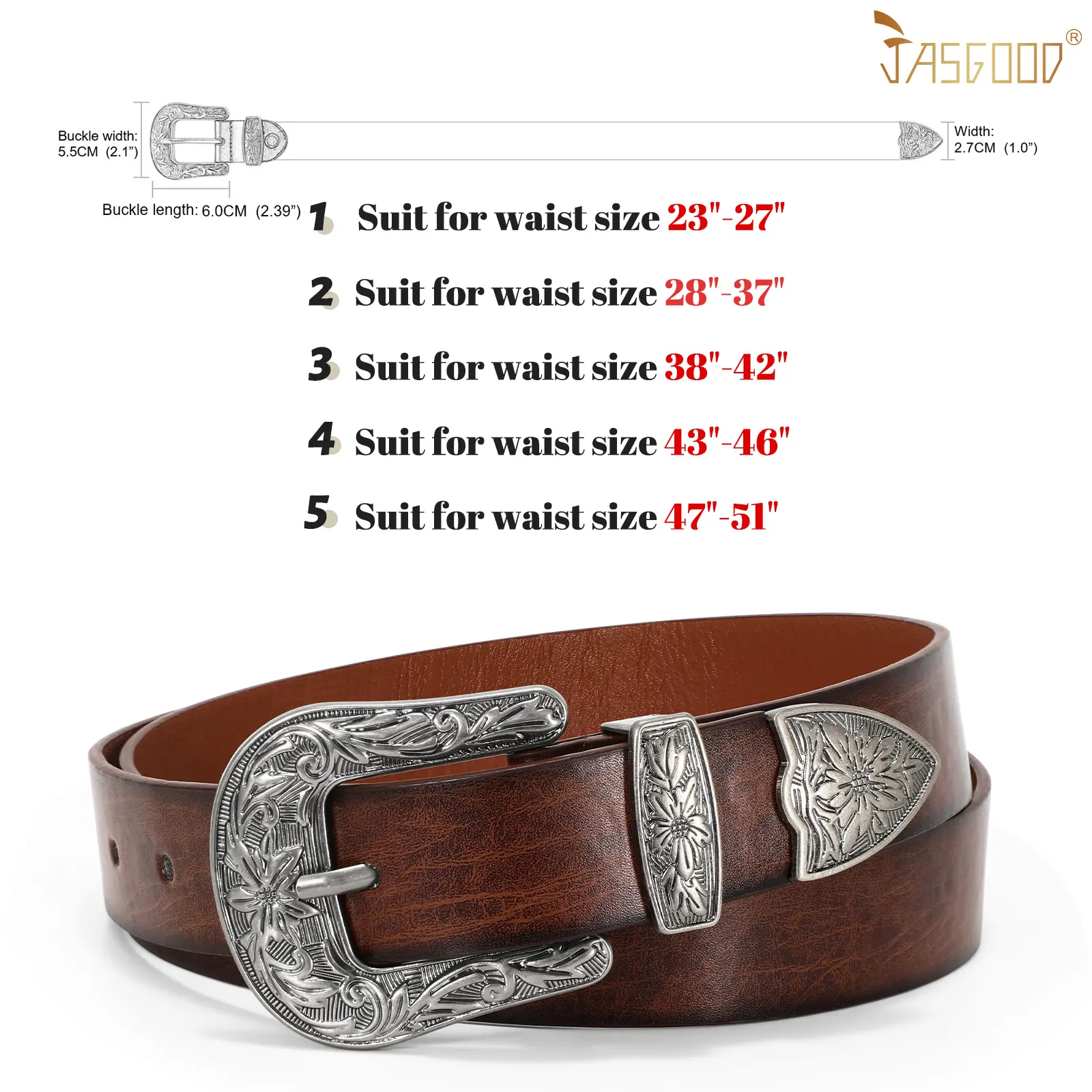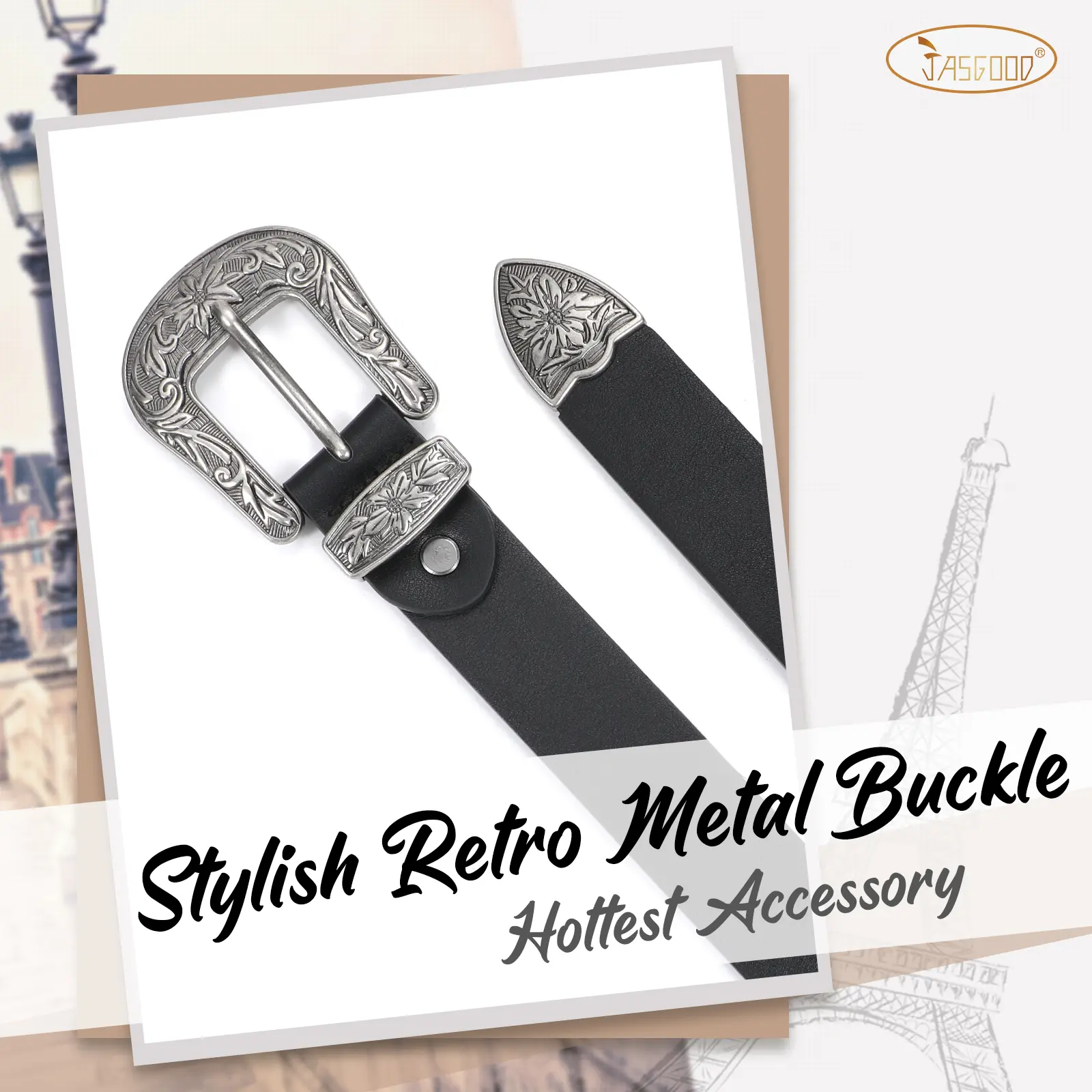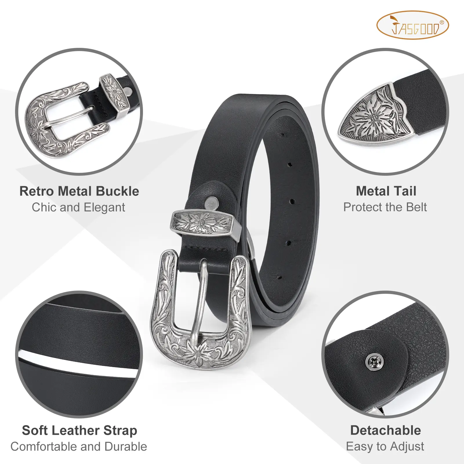 JASGOOD Women Vintage Western Design Black Leather Waist Belt for Ladies Pants Jeans Dresses Boho Leaf cowgirl belt
