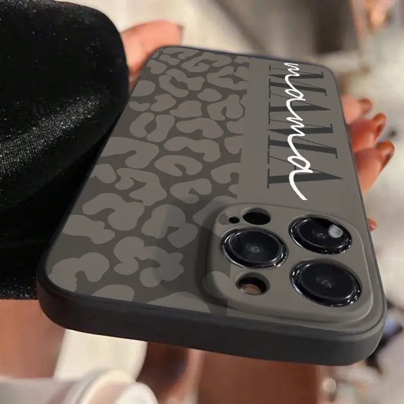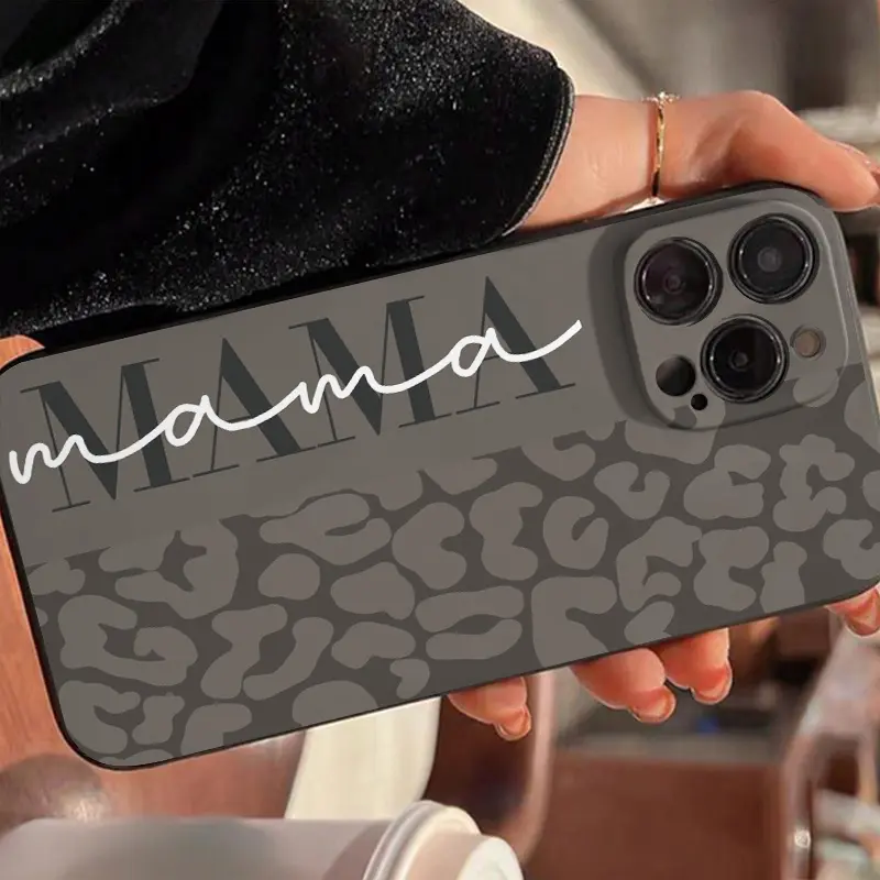 Black MAMA leopard pattern, full lens drop-proof and shockproof fashionable mobile phone case, suitable for iPhone16 15 14 Pro/Pro Max/Plus, 13 12 11 Pro/Pro Max, XS Max XS X, can be given as a gift to friends and family Screen Protector Cover