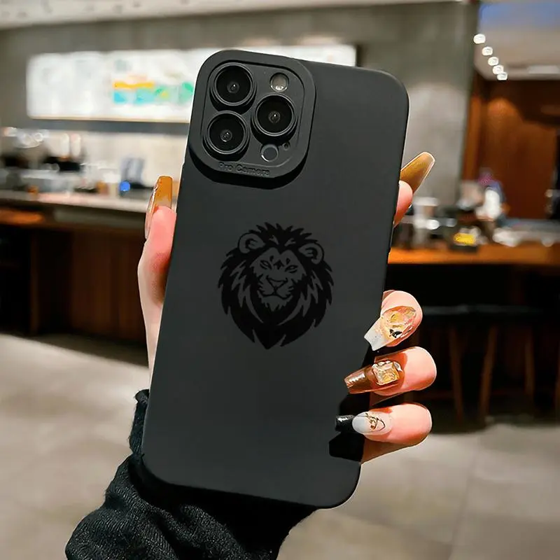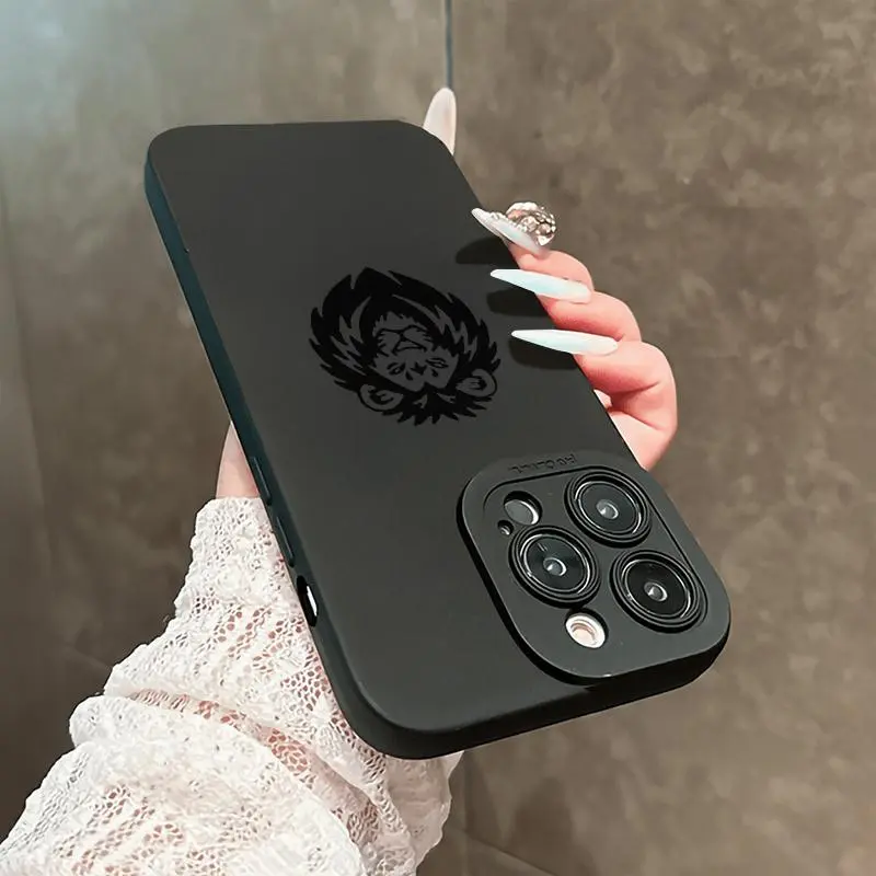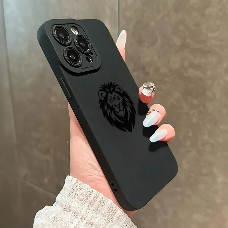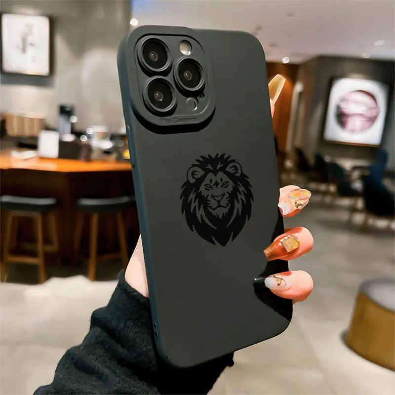 Black lion head pattern TPU material anti-drop hole precision all-inclusive protective case Suitable for IPhone17 11 12 13 14 15 16 Pro Max Air Plus