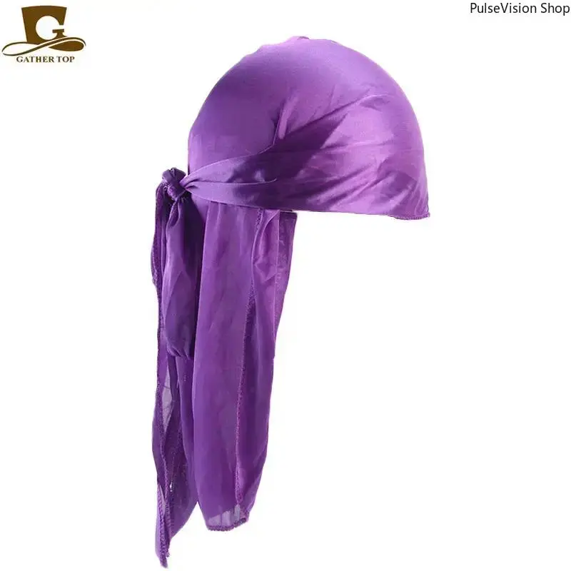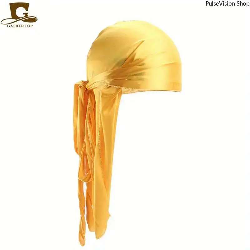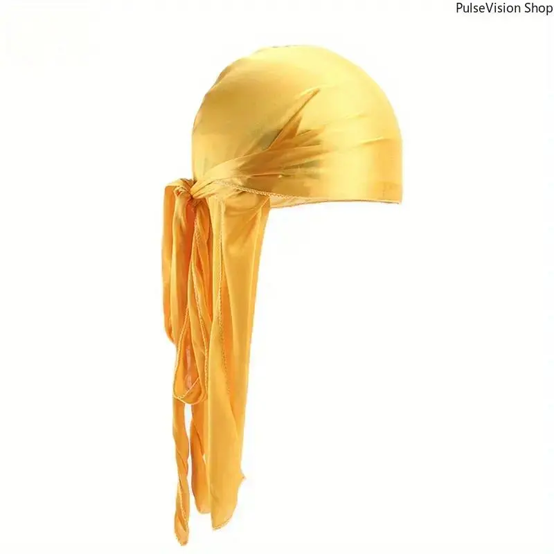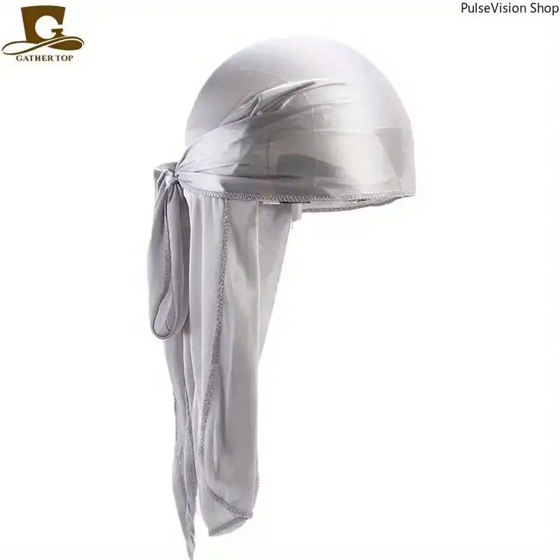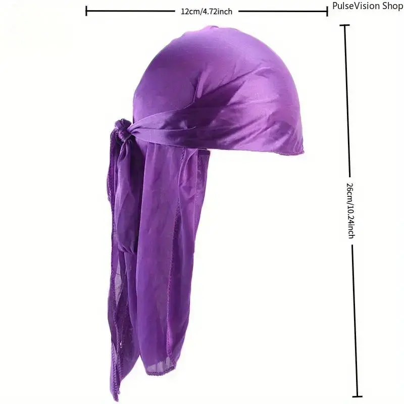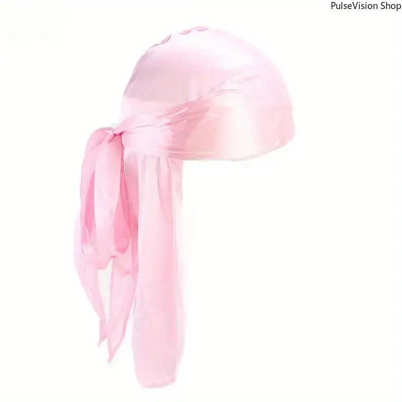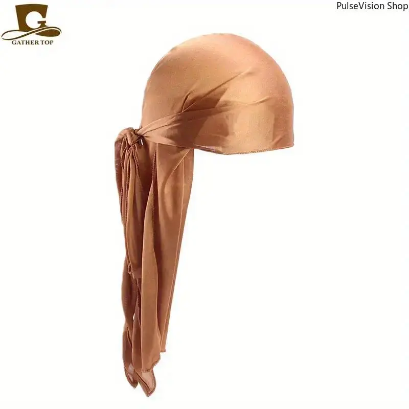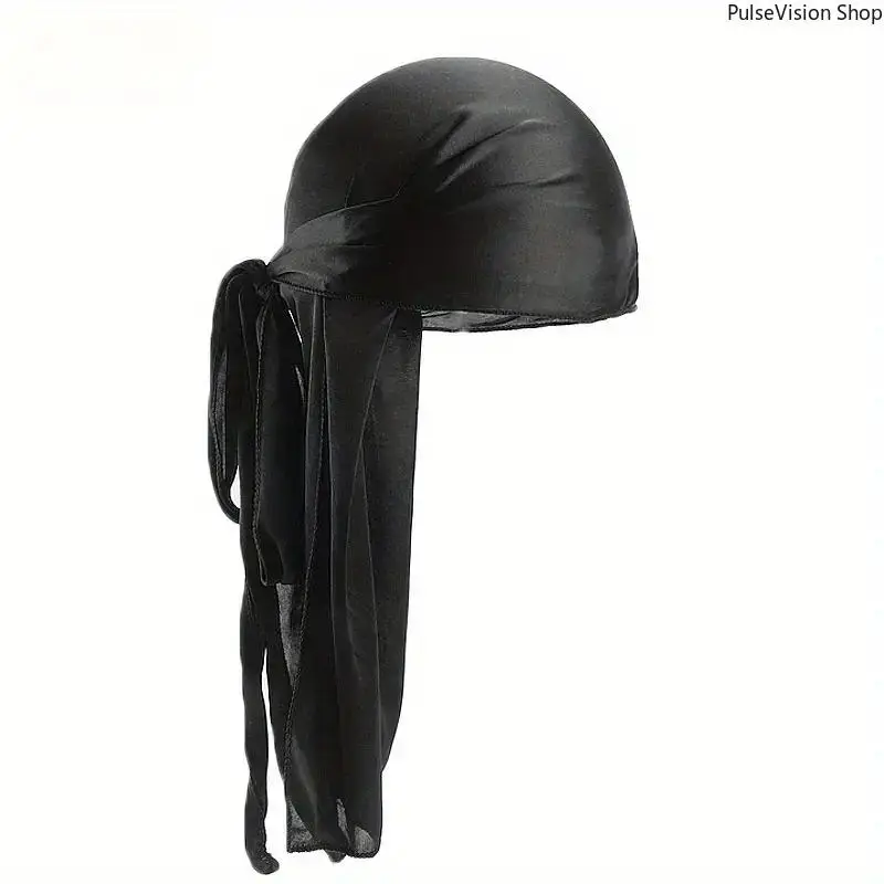 5. Black Long Tail Headscarf Hat, Shiny Polyester Turban Cap for Casual & Formal Occasions