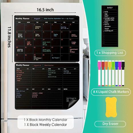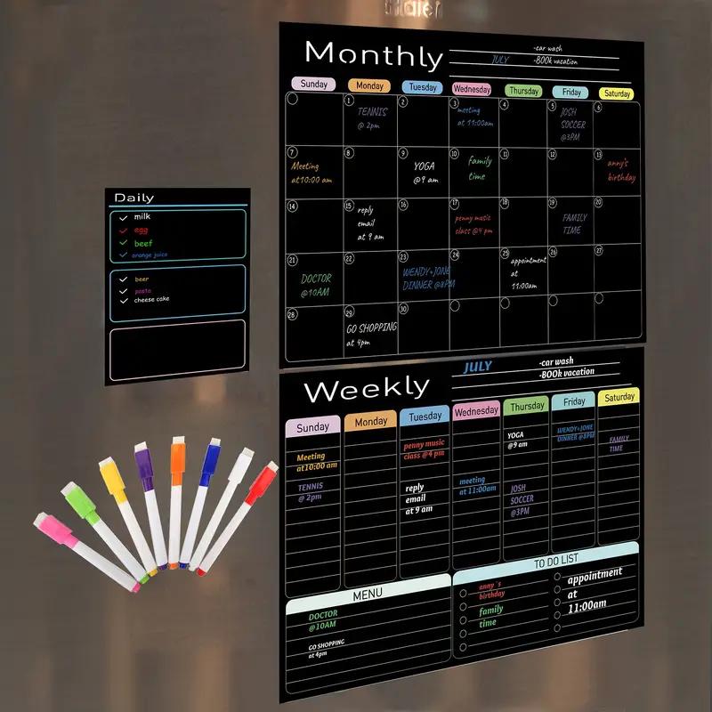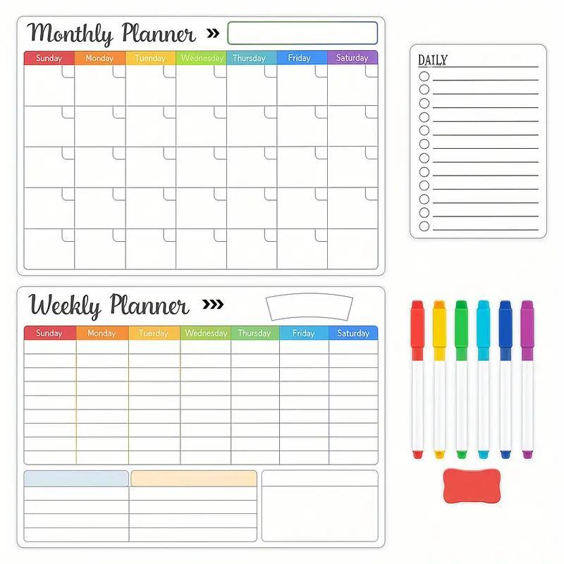 Get completely organized with our set of three magnetic dryerase calendars, designed to help you stay on top of yourmonth, week, and daily tasks with ease. This comprehensivecalendar includes: