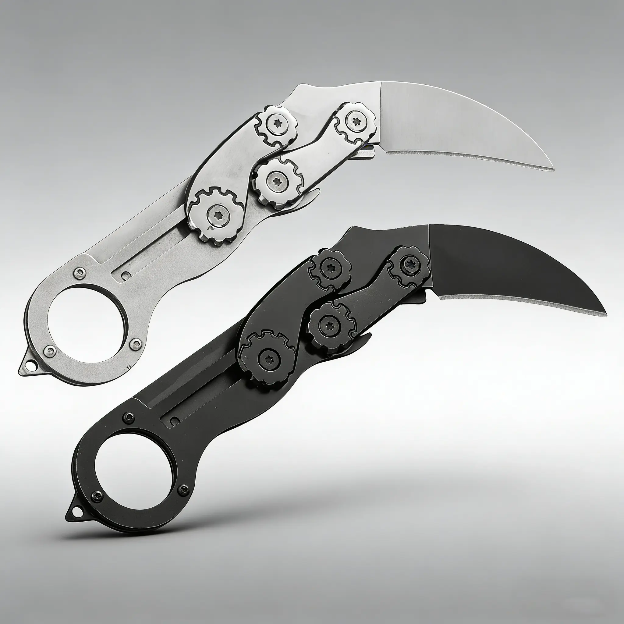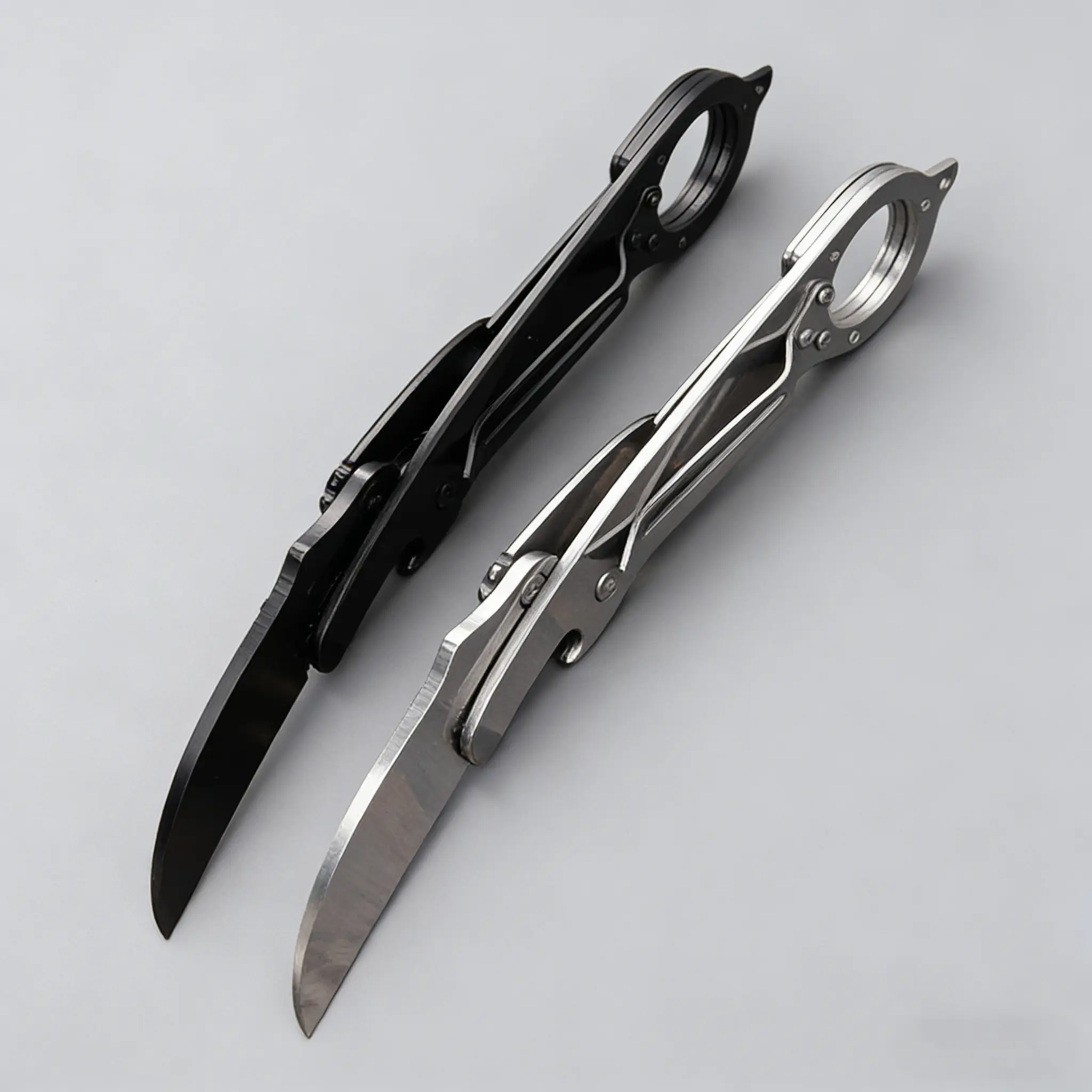 A compact folding utility tool designed for daily cutting tasks. The curved stainless steel blade provides smooth, controlled cutting, while the foldable design makes it easy to carry and store.