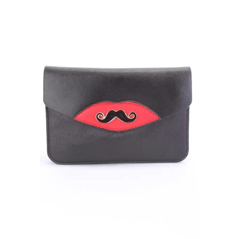 5. Black Mustache Pendant Faux Leather Clutch