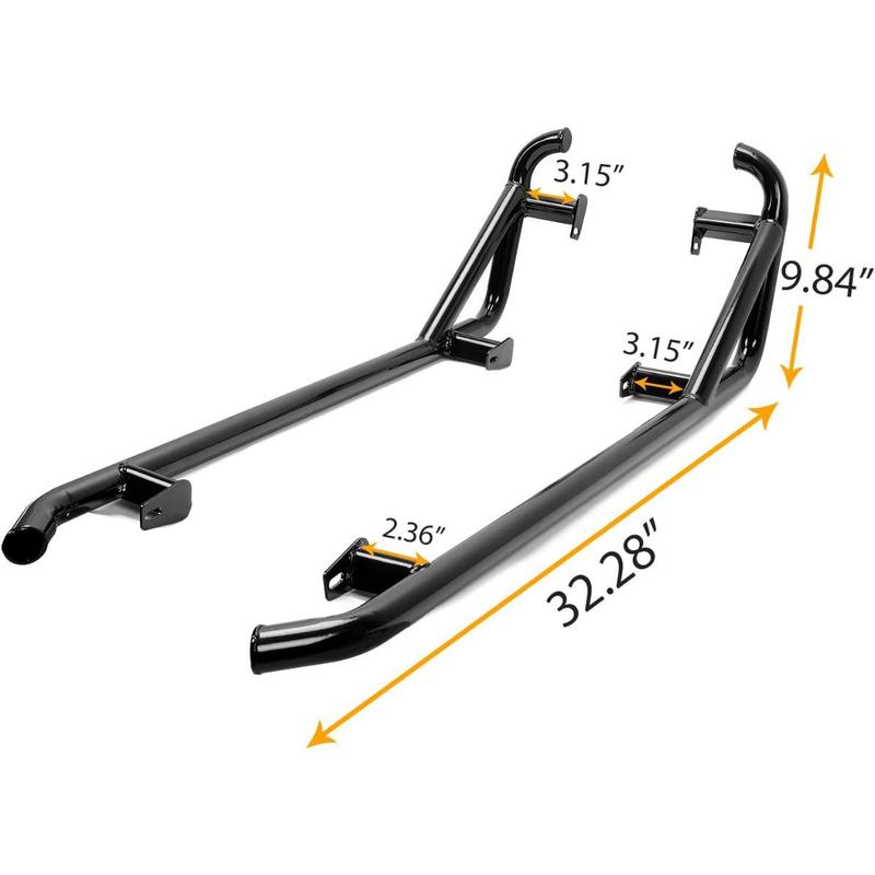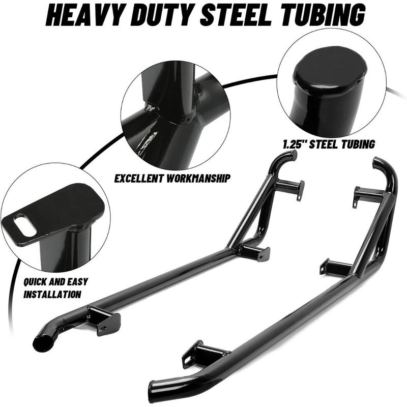 ·BETTER PROTECTION: Nerf bars additionally fill the gap between the rider's foot and outside the pedal area and the front and rear tires. It keeps the wheels of other utvs from colliding with yours and also protects the frame from rocks, trees and other damaging obstacles on the road