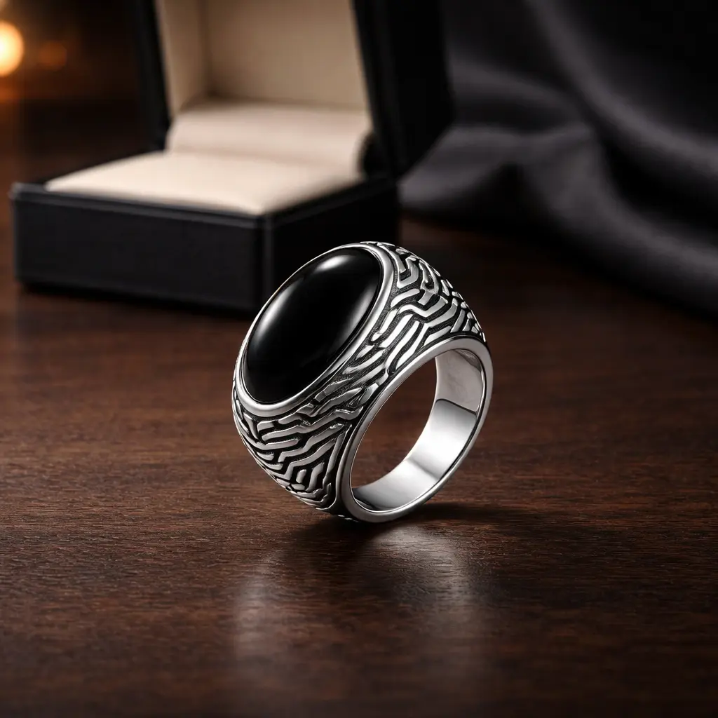 Add a touch of vintage charm to your jewelry collection with our onyx 925 silver ring. This chunky ring features a long, striking onyx gemstone and intricate scrolling patterns. The perfect everyday gift for fashion-savvy women, this ring will make a lasting impression. Crafted from high-quality 925 silver, it's built to last and holds its shine for years to come. Whether dressing up or dressing down, this onyx silver ring is sure to complement any outfit. Shop now and elevate your accessory game!