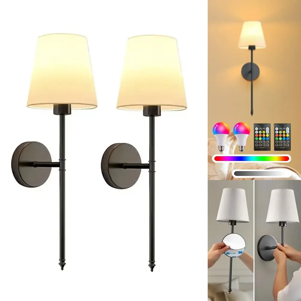 I bought the black scones it came in pieces and I had to put together. Took me about 10 min to set it all up. I charged the lightbulb overnight. However they don’t stay on for a long time. I get about 30 min to an hour. I use it on the warm light. They are cute but not sure if it’s worth the $34