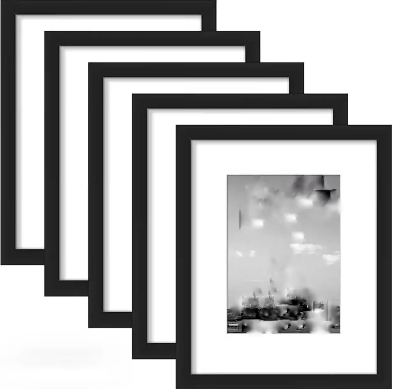 Picture Frames Set (5 PCS) – Black Gallery Wall Frames with Mat | Modern Photo Frames for Wall & Table Display (Multiple Sizes & Pack Options)
