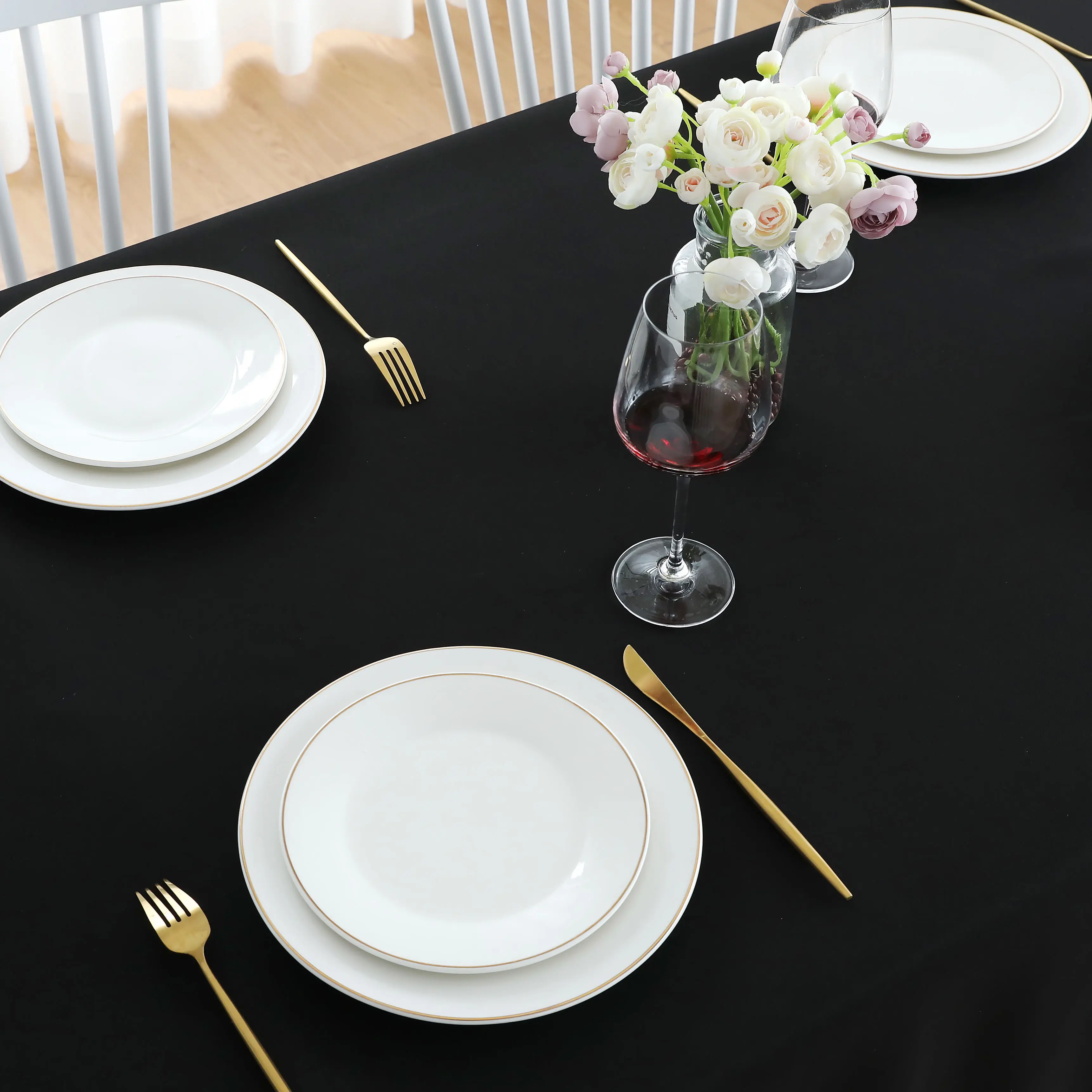 5. Black Rectangle Tablecloth Wrinkle Free Waterproof Polyester Table Cloths Spillproof Heavy Duty and Washable Table Cover for Party, Banquet, Indoor and Outdoor-Square/Rectangular