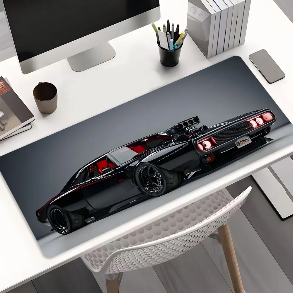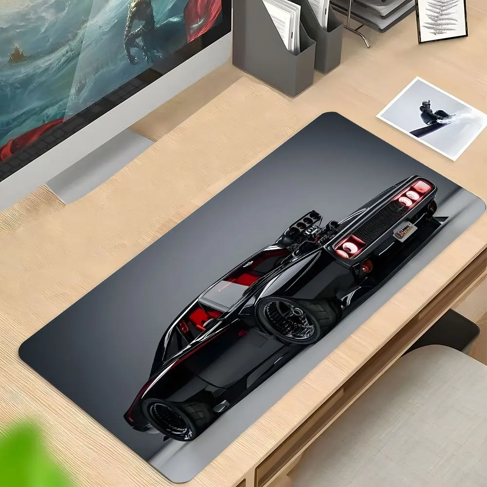 Black-Red Sports Car Style Large Gaming Mouse Pad, Desktop Accessory, Cyber Aesthetic Desktop Decoration Protection Pad, Washable Rubber Non-Slip Lock Edge Multi-Size Mouse Pad For Home Office, For Car Enthusiasts, Family and Friends