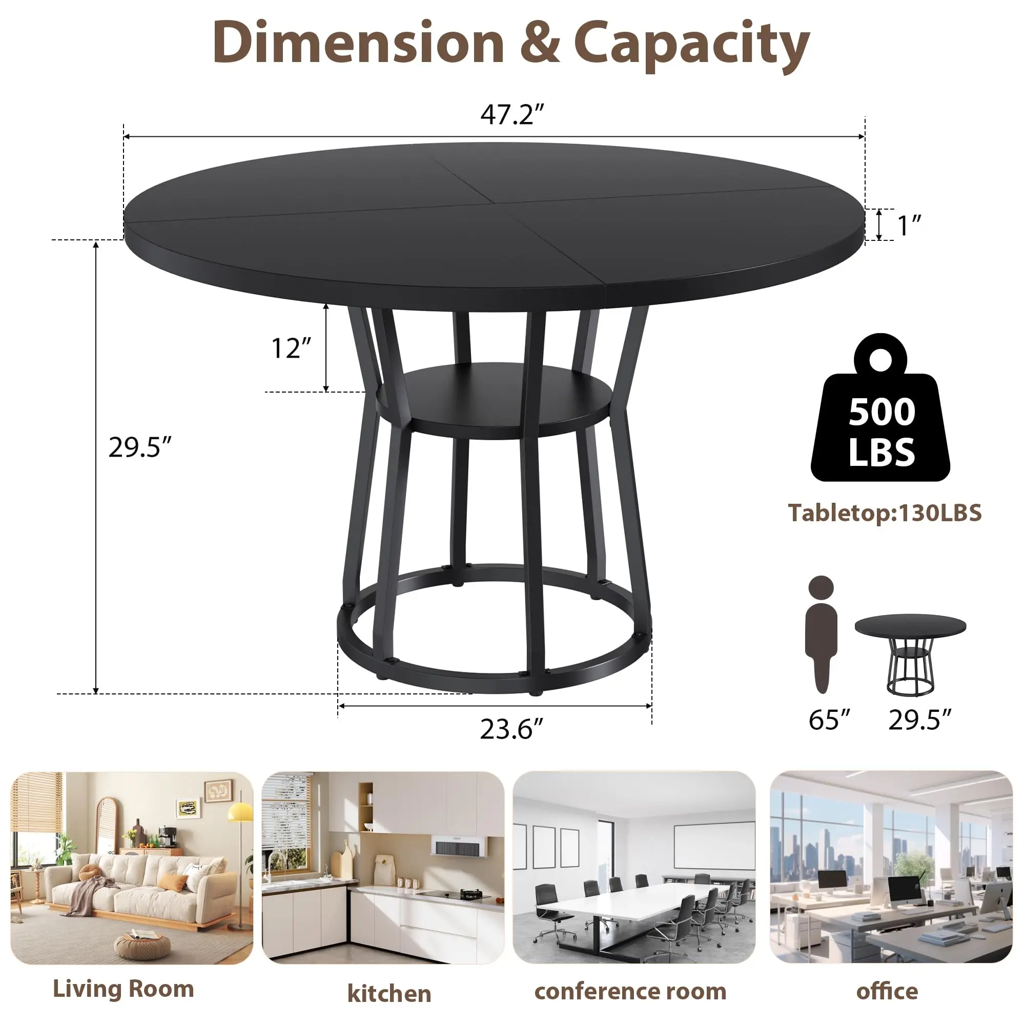 【Easy to Assemble】: The round kitchen table measures 47 in L x 29.5 in H x 23.6 in W, come with detailed assembly instructions and all required hardware. When installing, please follow the instruction manual and distinguish the screw types. If you have any installation issues, please feel free to contact us, we will solve it for you as soon as possible.
