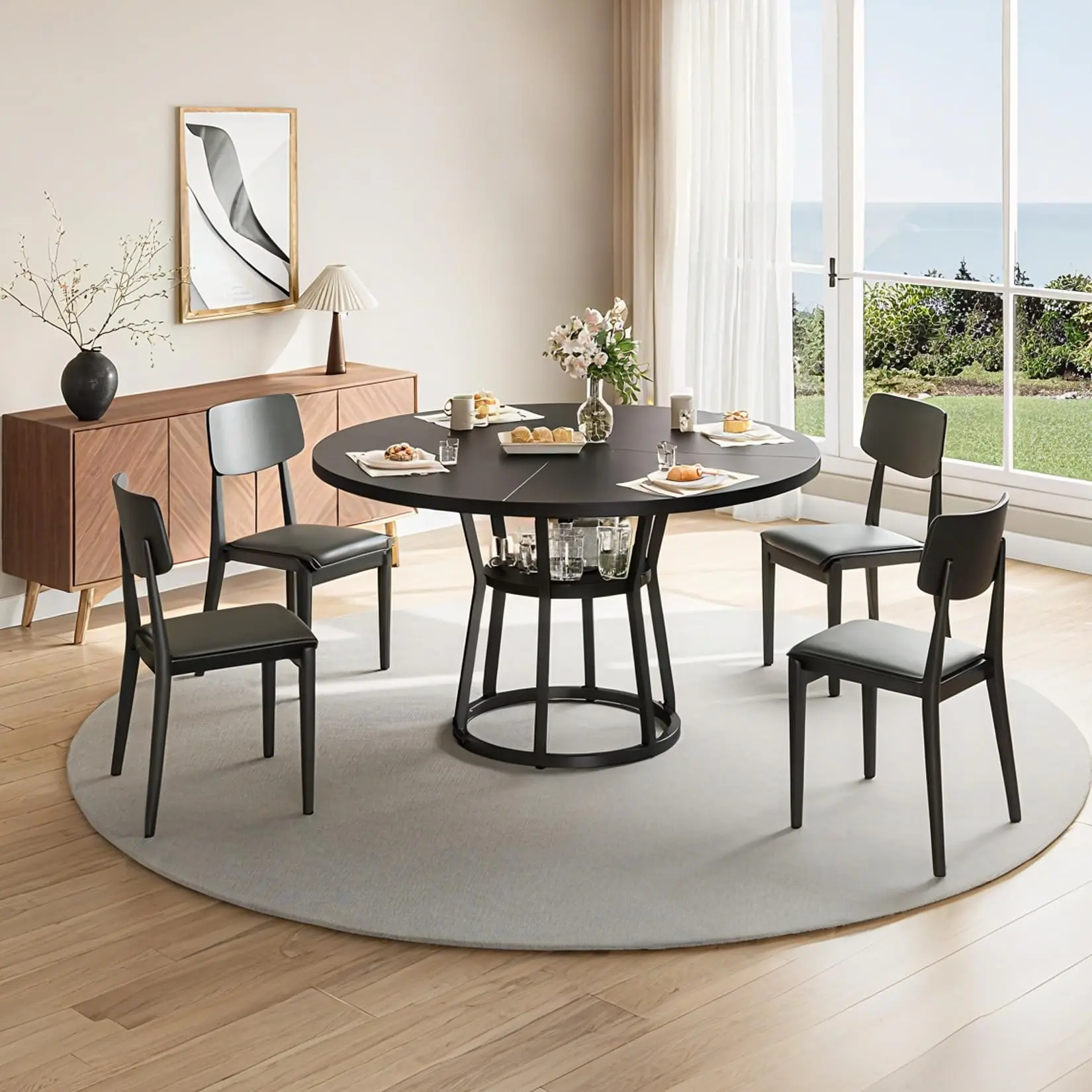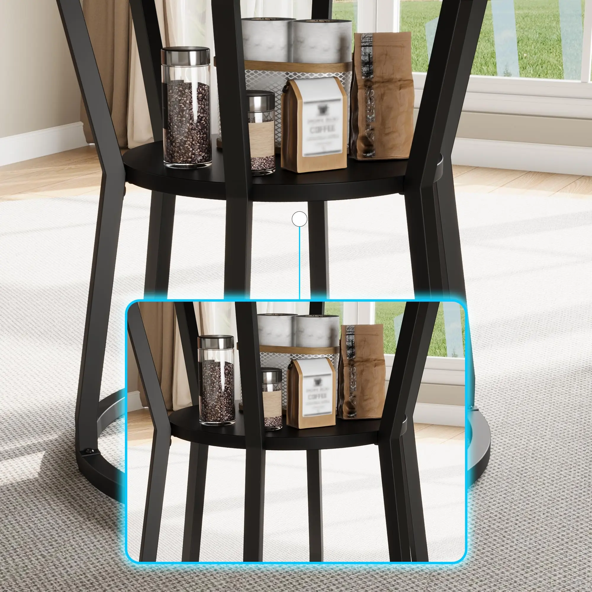 【Practical Storage Shelf Design】The kitchen table is designed with an additional storage shelf at the bottom, providing convenient space for storing dinnerware or decorative items. With a diameter of 23.6 in, this thoughtful shelf design not only maximizes storage but also enhances the table’s functionality and helps save space.
