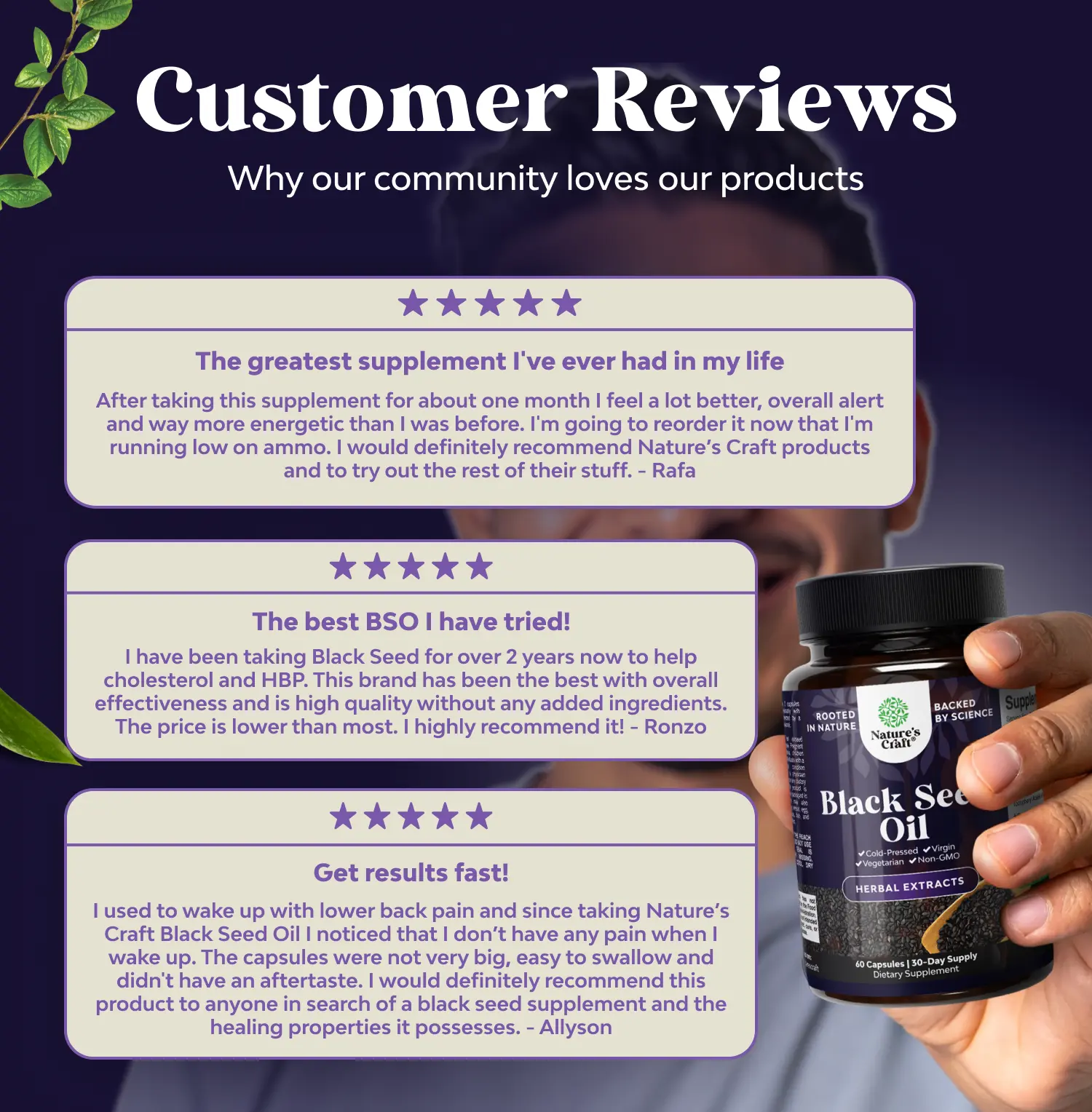 5. Nature's Craft Black Seed Oil Supplement - Hair Growth Immune Support Joint Health and Digestion Healthcare Fitness