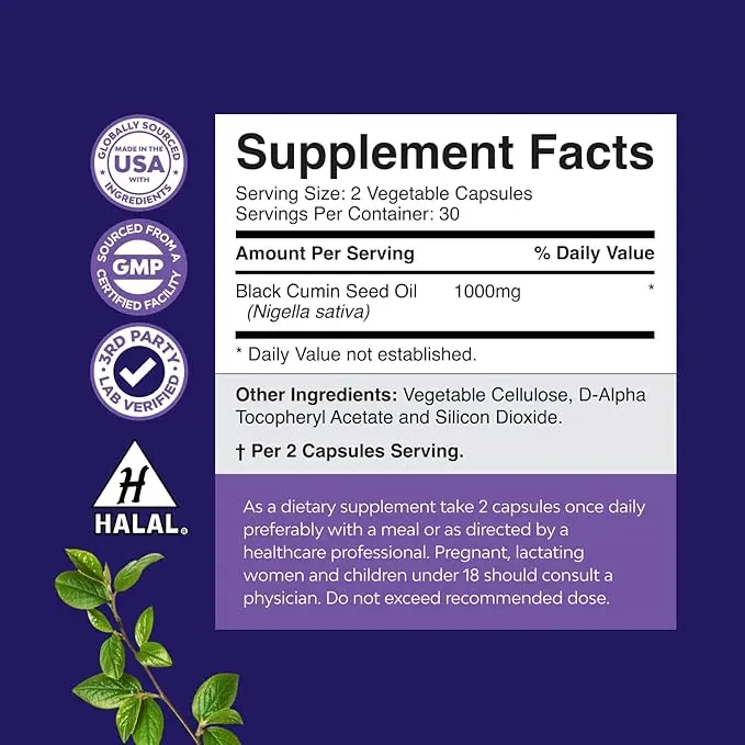IngredientsBlack Cumin Seed Oil (Nigella sativa)