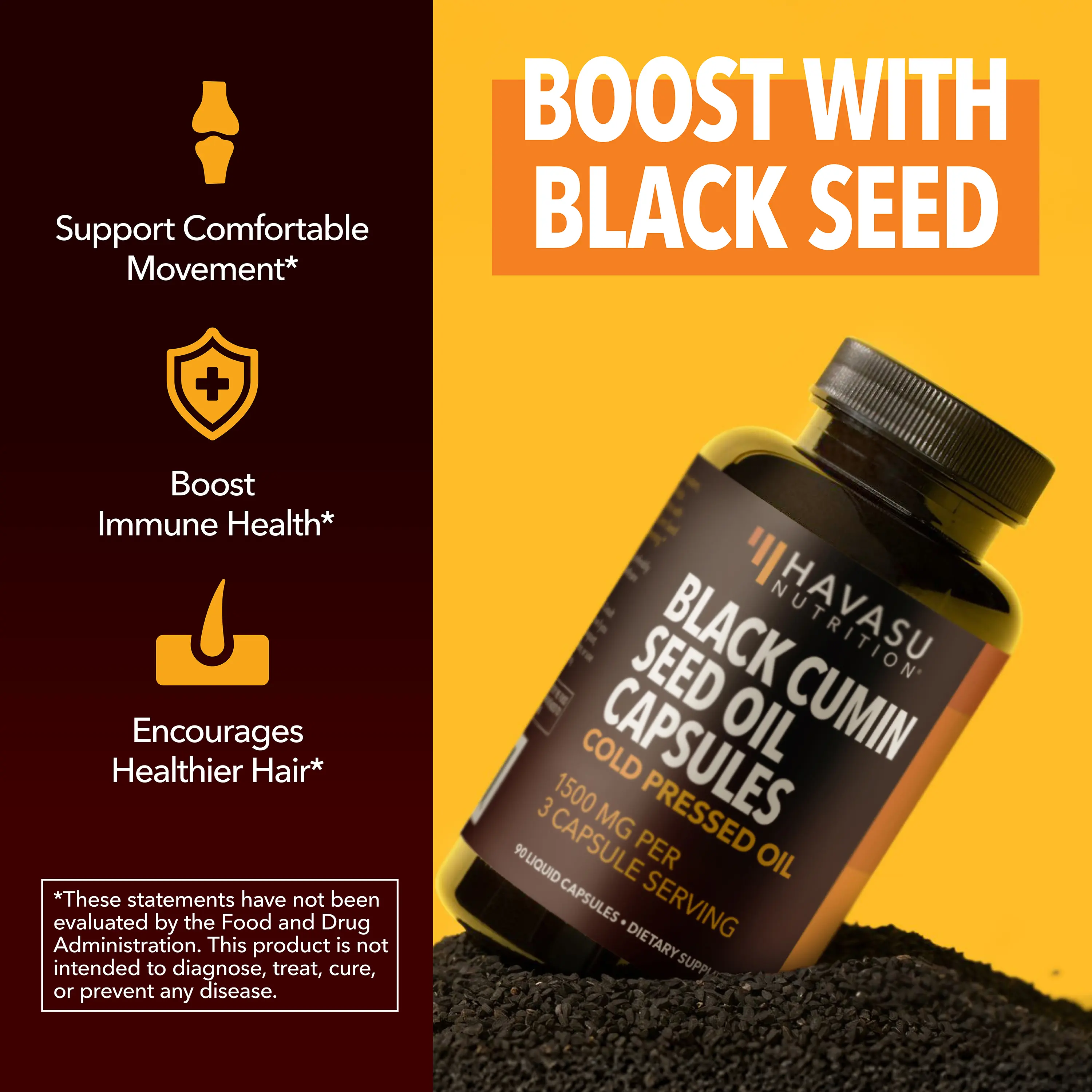 ·Rich in Black Cumin Seed Oil - Each capsule is packed with 1500mg of cold-pressed Nigella sativa oil, providing a powerful blend of antioxidants and essential fatty acids to support digestive, skin, and hair health.