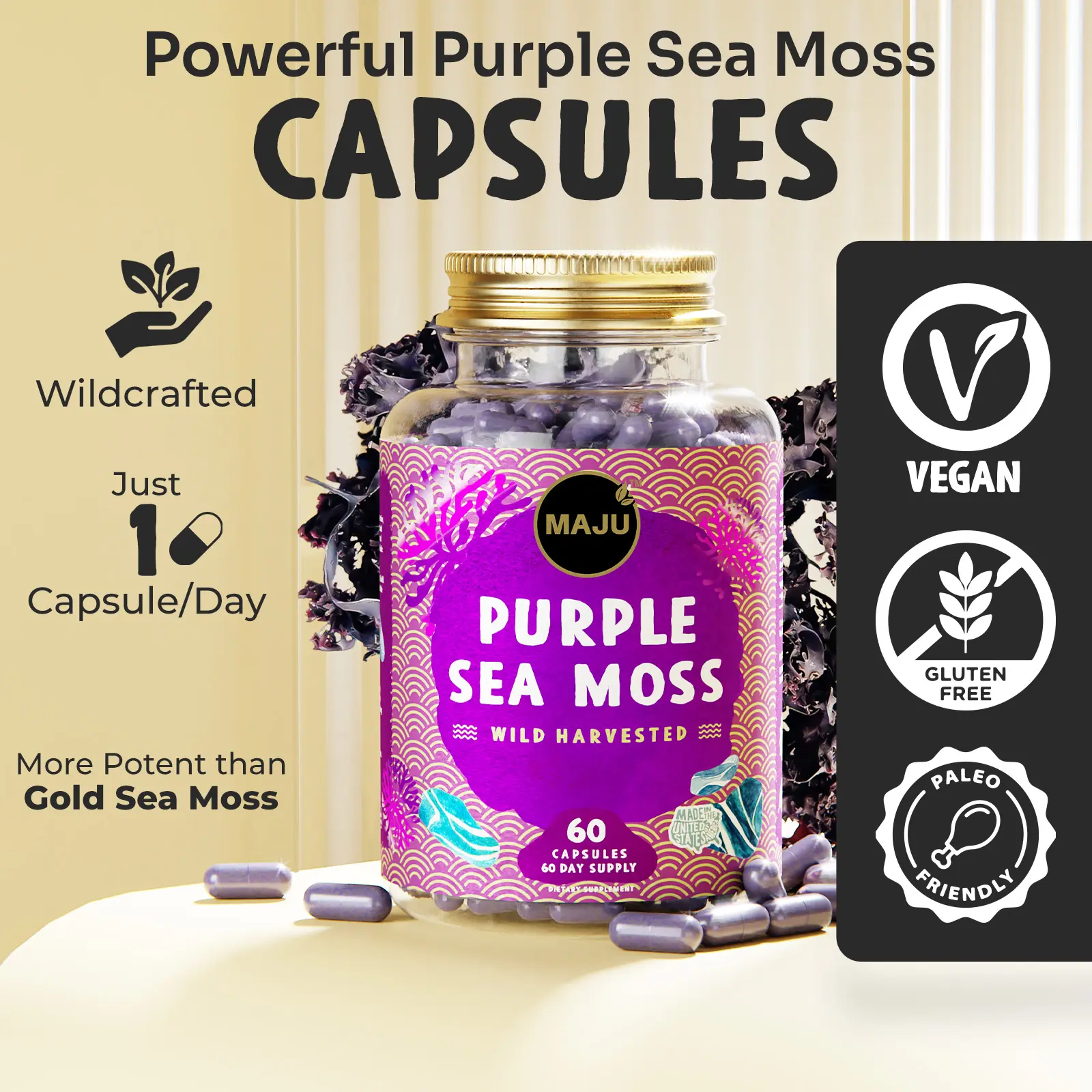 ·Lab Tested & Verified: Both Maju's black seed oil and purple sea moss capsules are 3rd party lab tested and verified for purity and potency. Then they are packaged in the USA in a GMP Certified facility.
